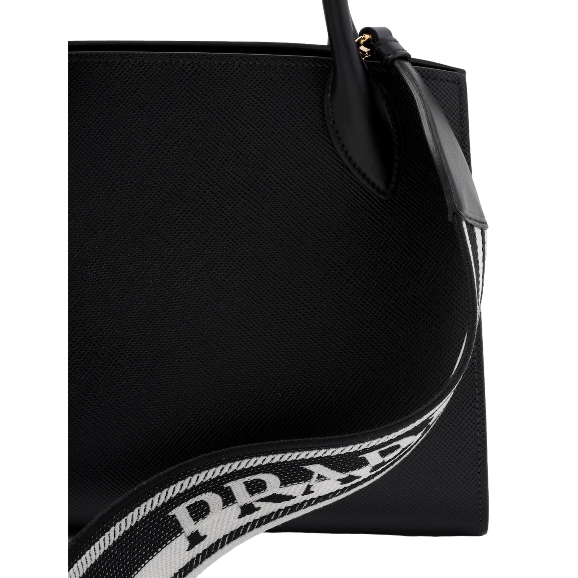 Prada Monochrome Saffiano Top Handle Crossbody Tote Bag Black