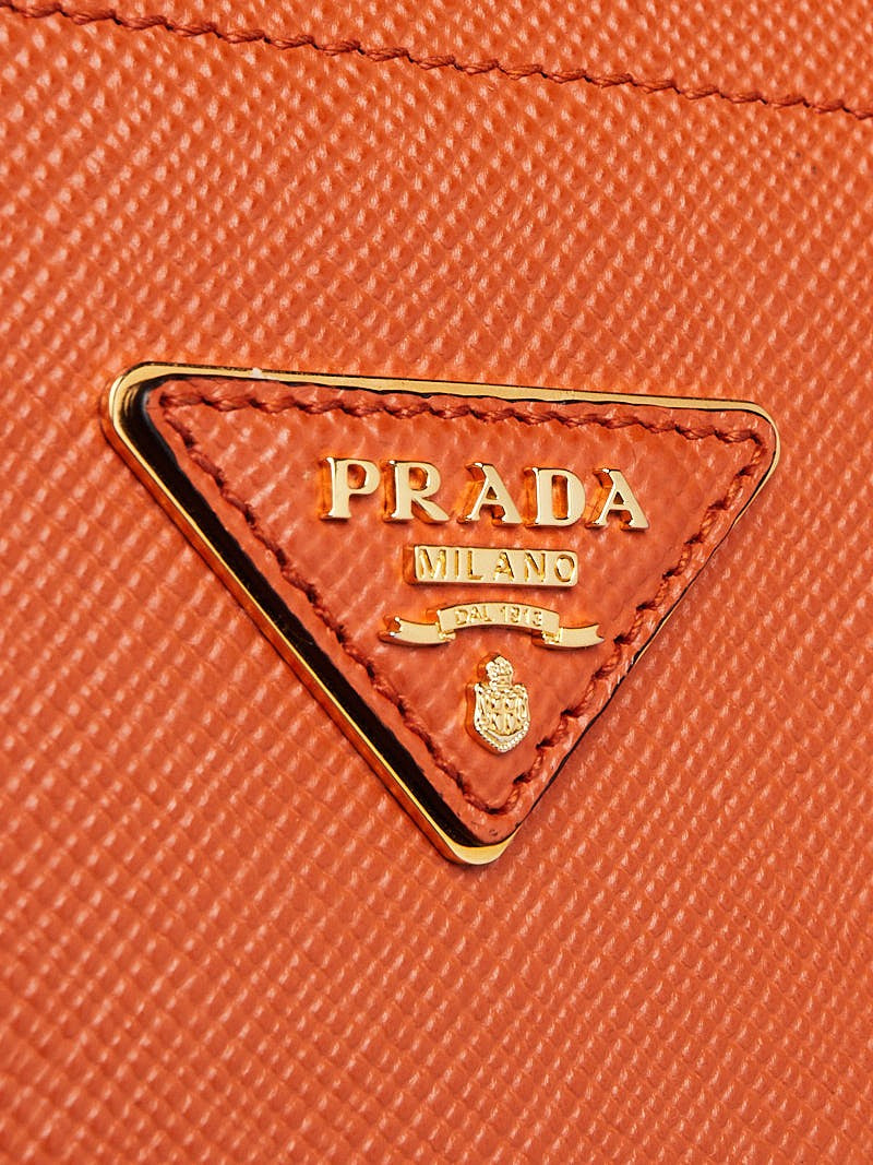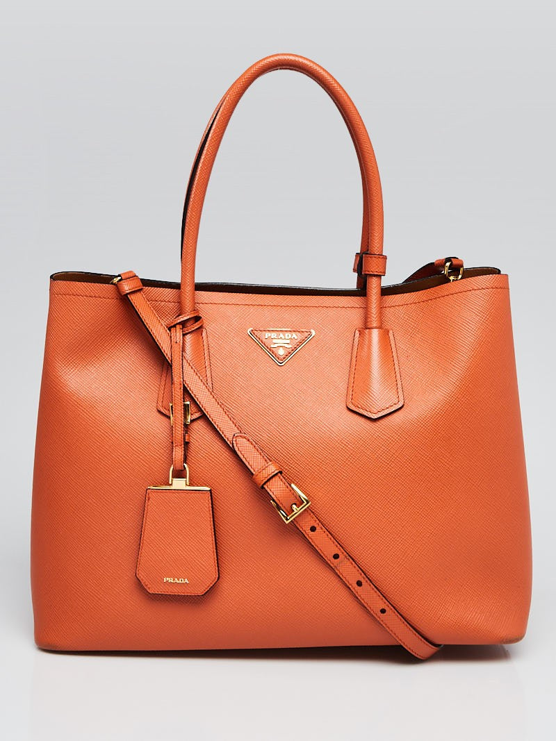Prada Saffiano Leather Double Handle Tote Bag-Orange.