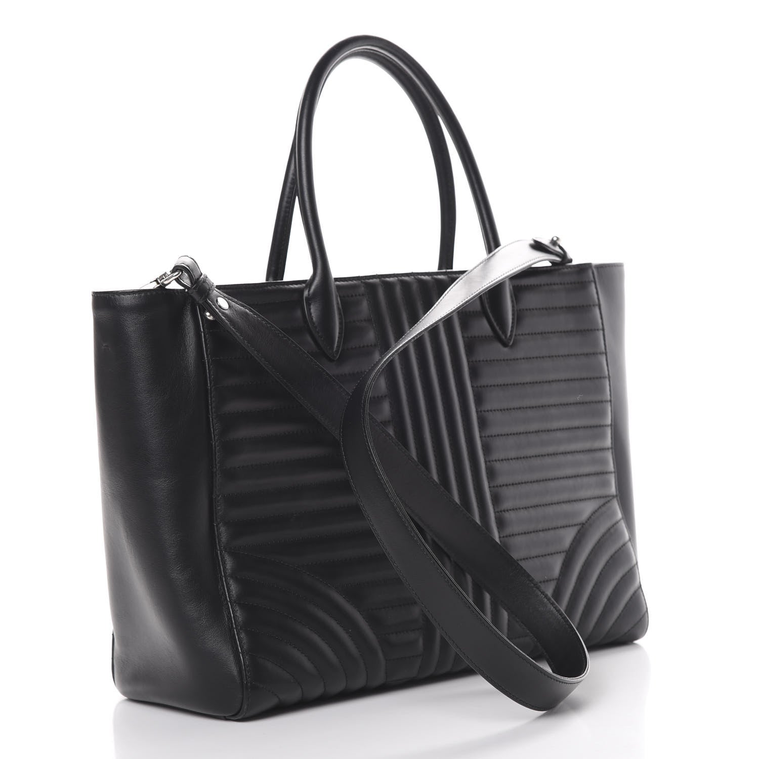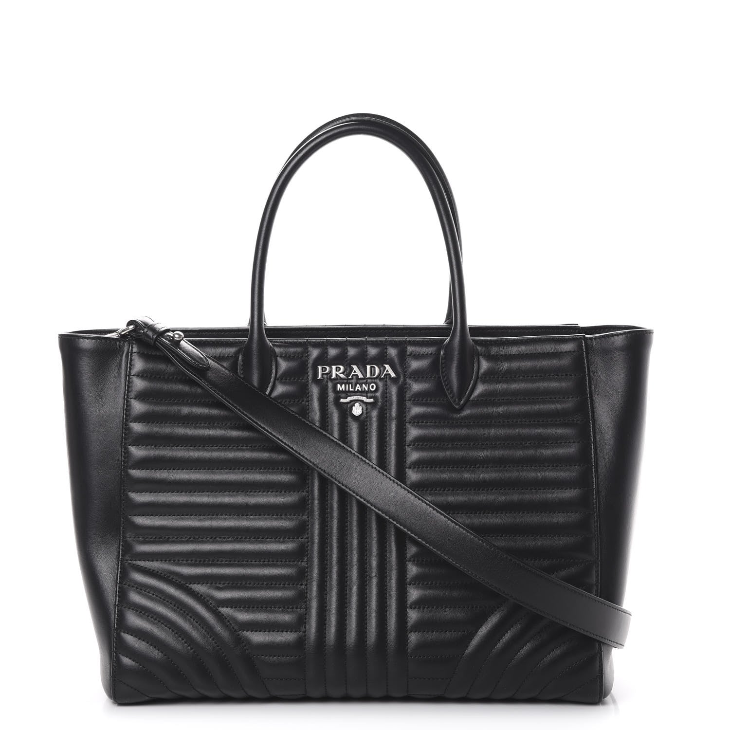 PRADA SOFT CALFSKIN IMPUNTURE DIAGRAMME TOTE BAG BLACK