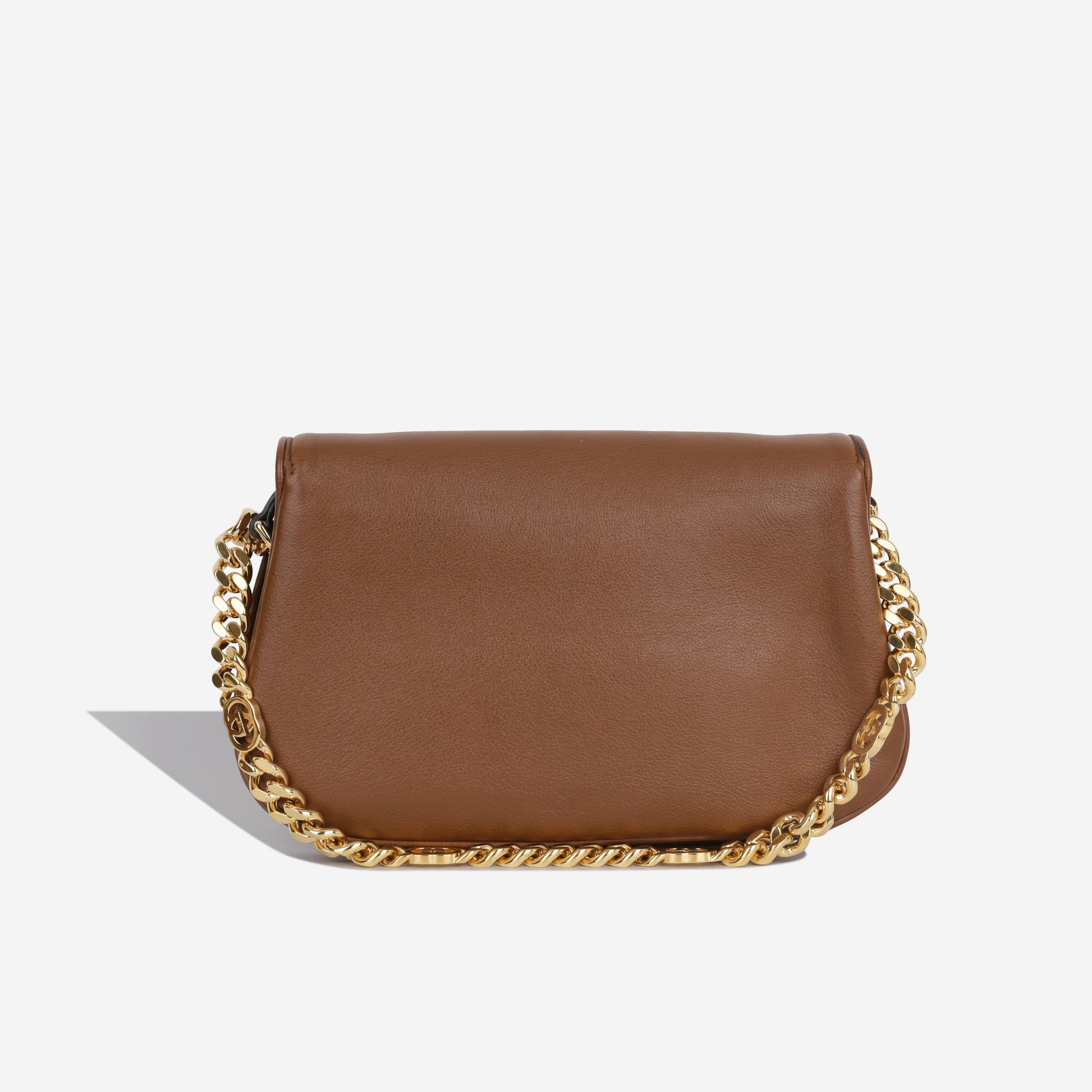 The Gucci Blondie Shoulder bag takes vintage elements from the brand and reforms it into this beautiful piece. It features two shoulder straps, one longer crossbody strap and a gold chain shorter strap. The rounded shape takes the hint from Gucci's monogram shape.