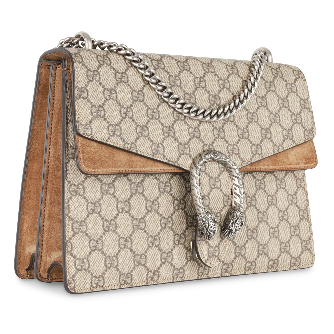 Inspired by the Greek God of wine and celebration, the Gucci Dionysus is an absolute must have for any woman with a love for luxury and a special spot for monograms. An instant classic, the Dionysus has become one of the most coveted bags of the past five years. The perfect companion for any and every occasion, you can easily pair your Dionysus with anything in your wardrobe. Decorated with the GG Supreme print and the signature tiger clasp, this shoulder bag can easily fit all your every day essentials comfortably inside.
