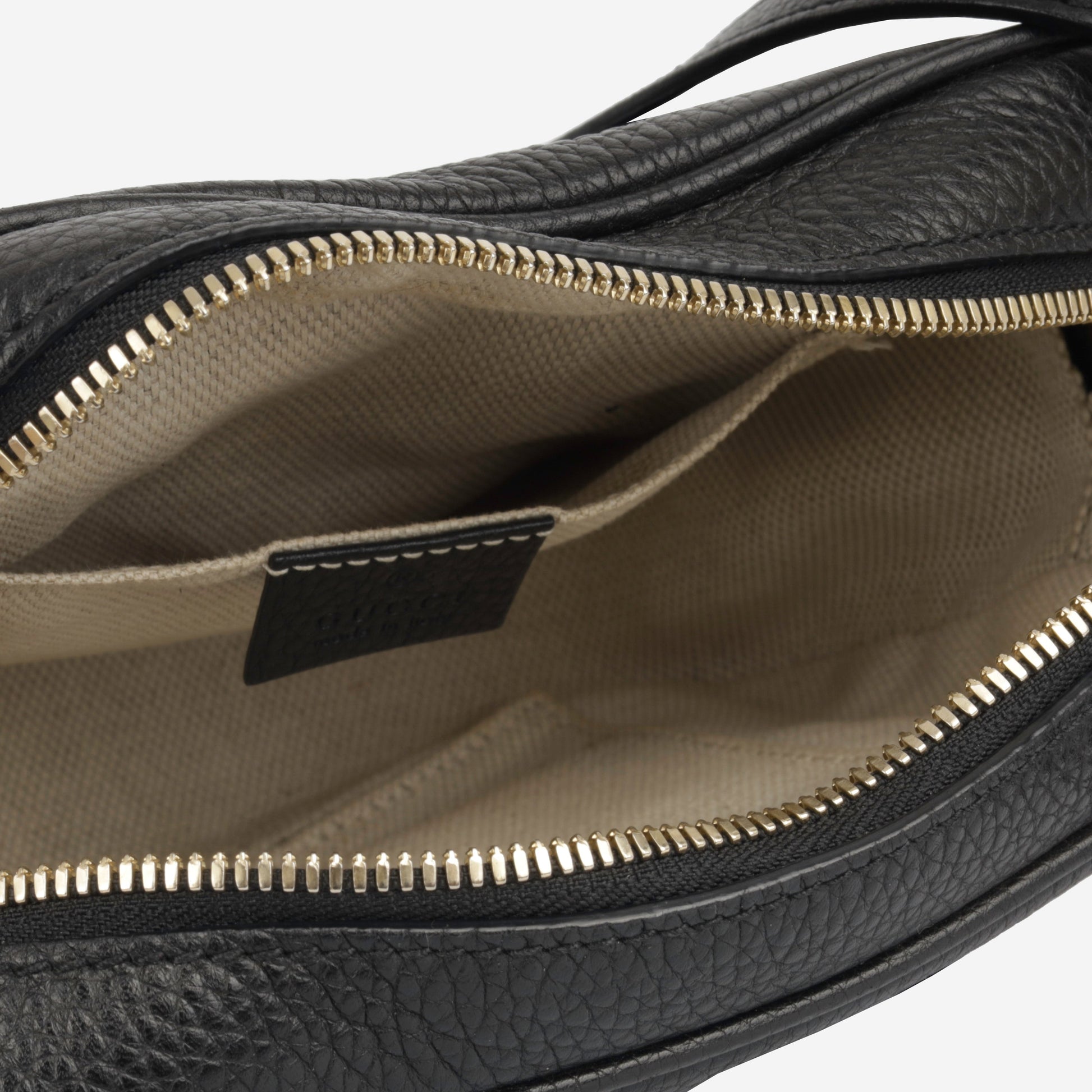 - Gucci embossed leather logo tag