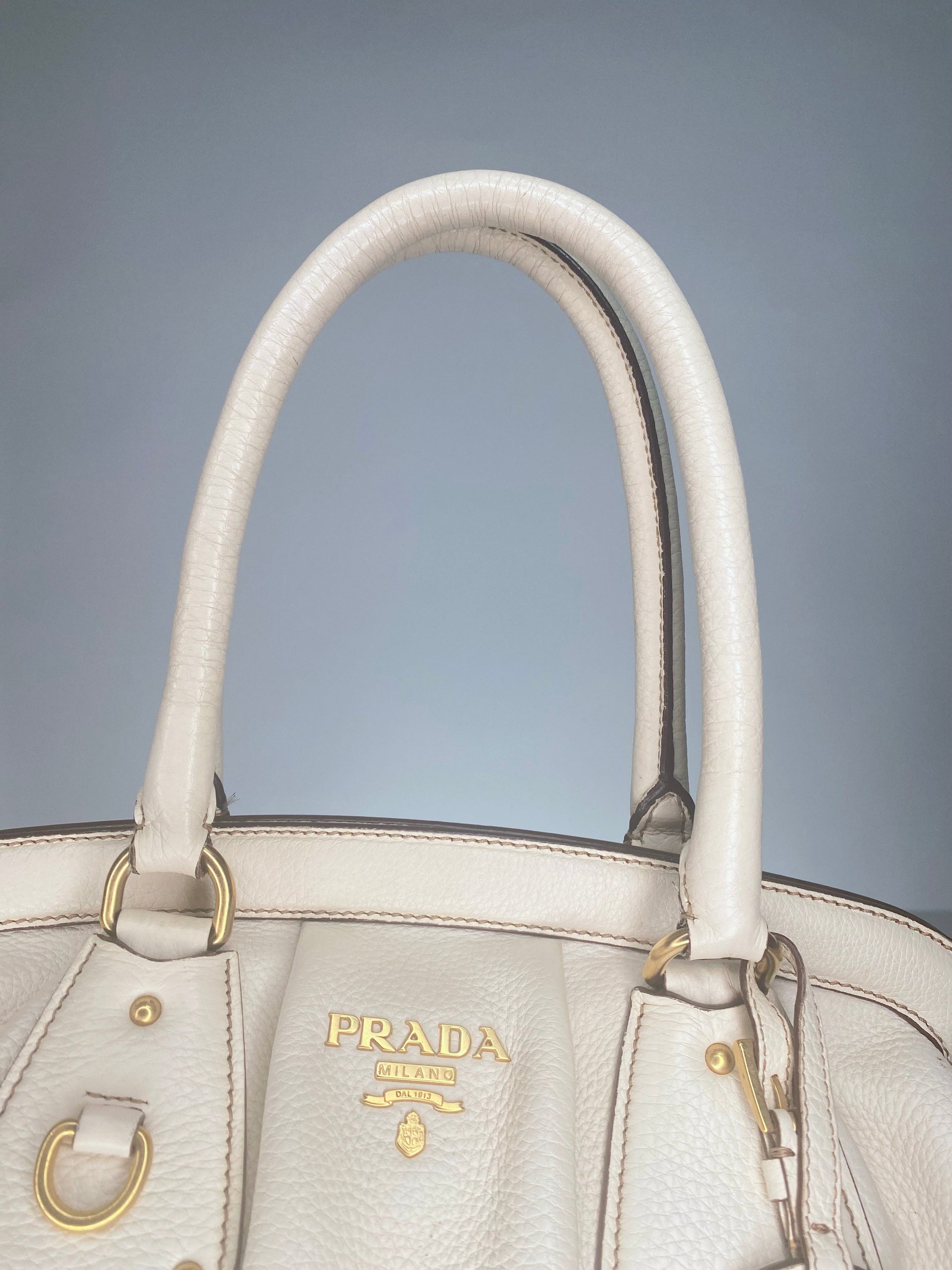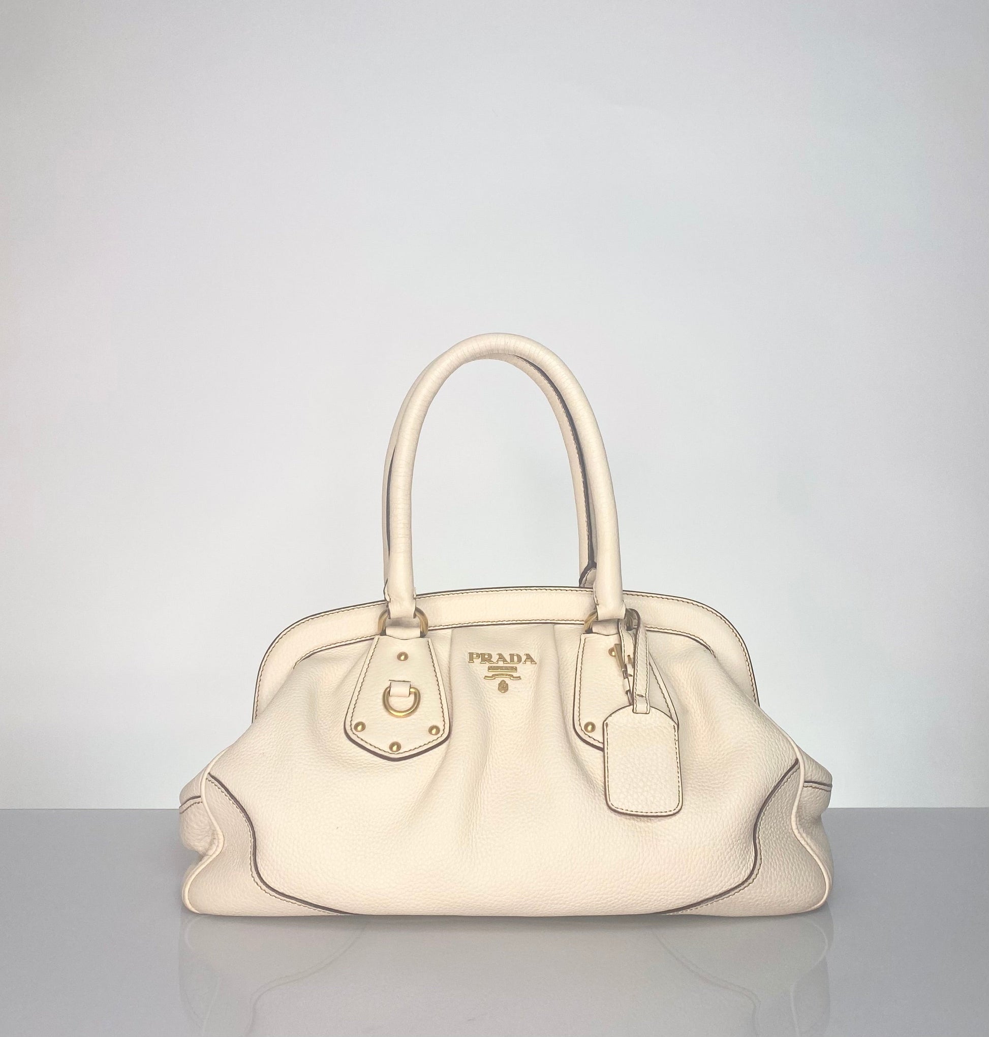 Preloved Prada Frame Vitello Daino Leather Satchel