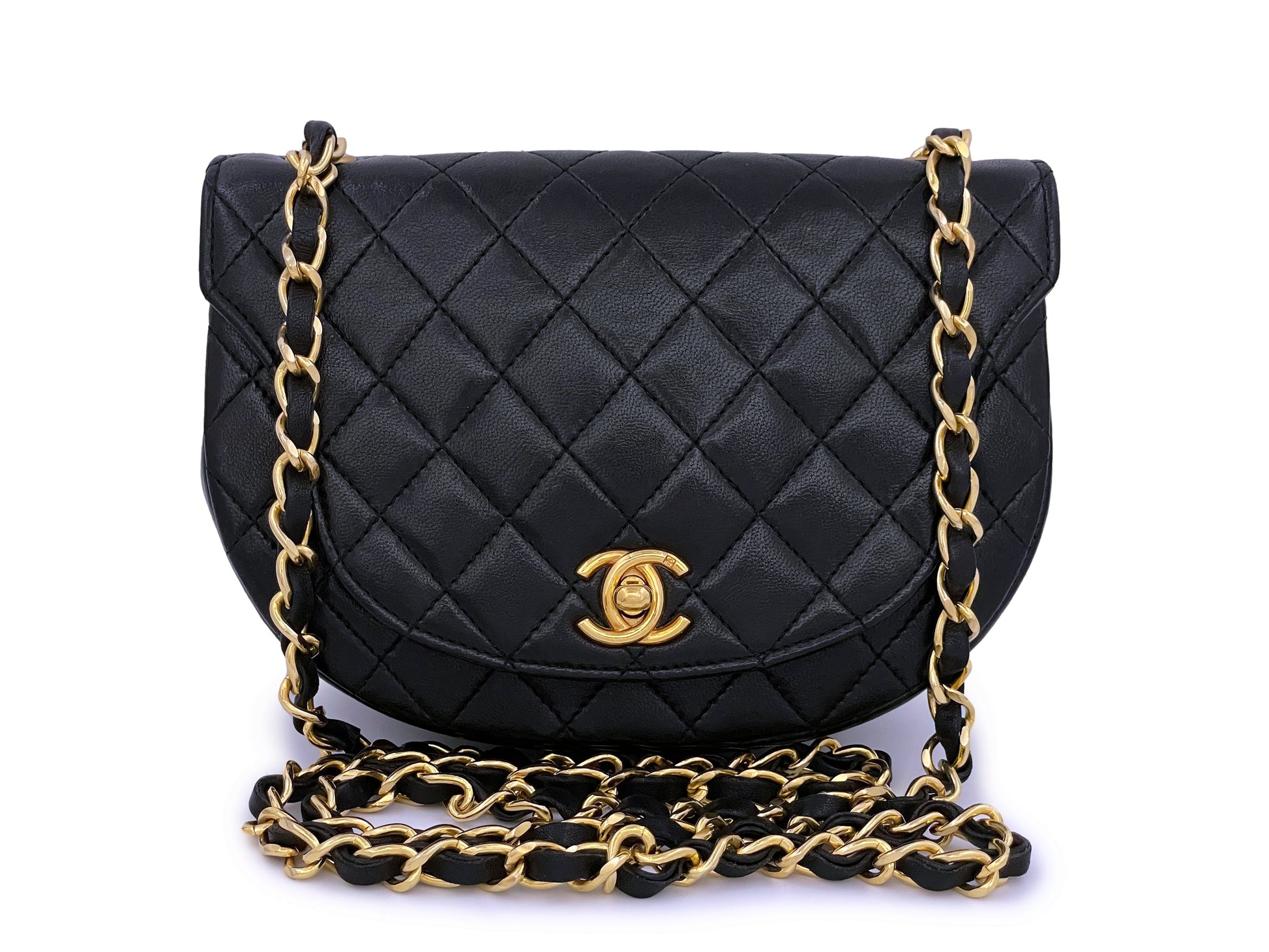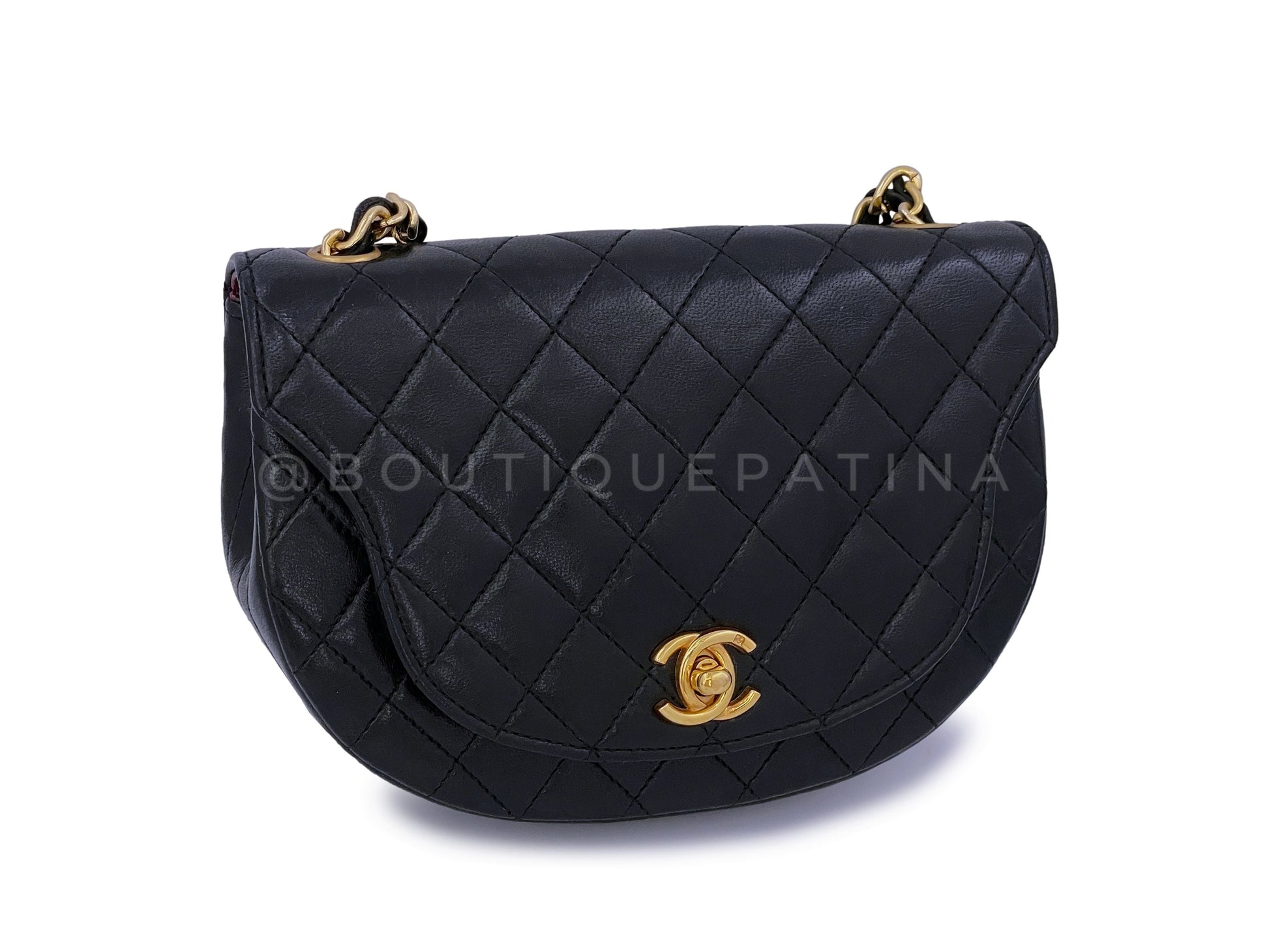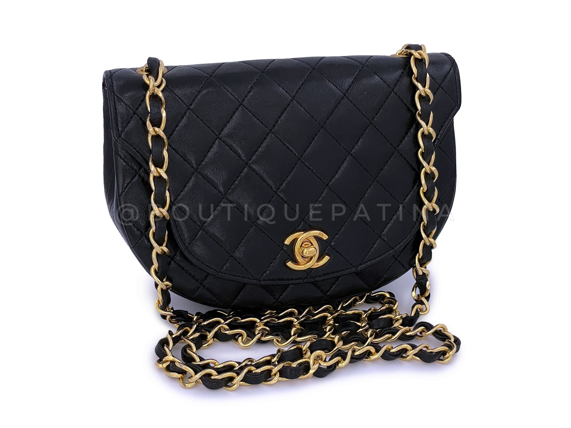 Pristine Chanel 1990 Vintage Black Half Moon Mini Flap Bag 24k GHW J3F