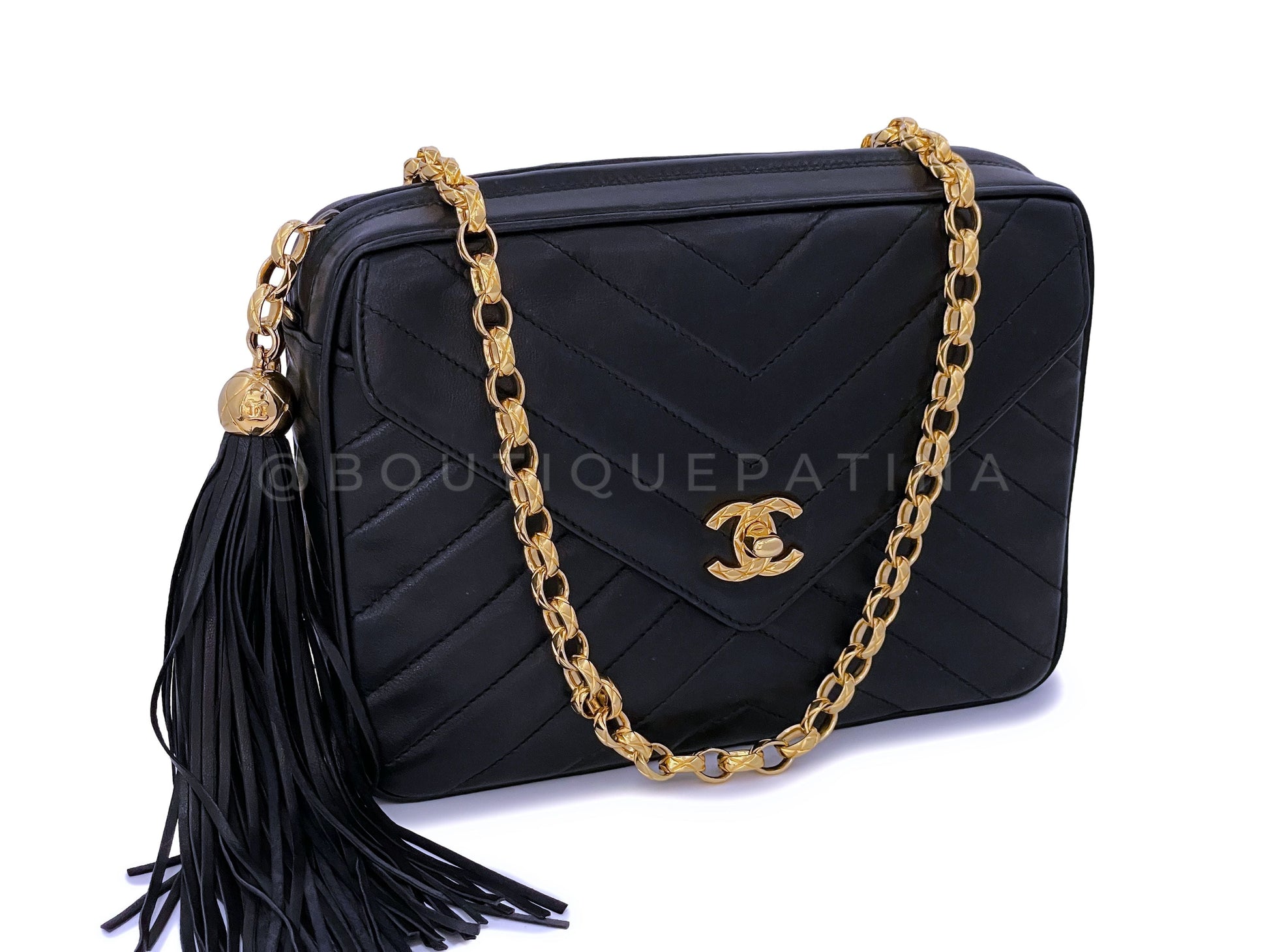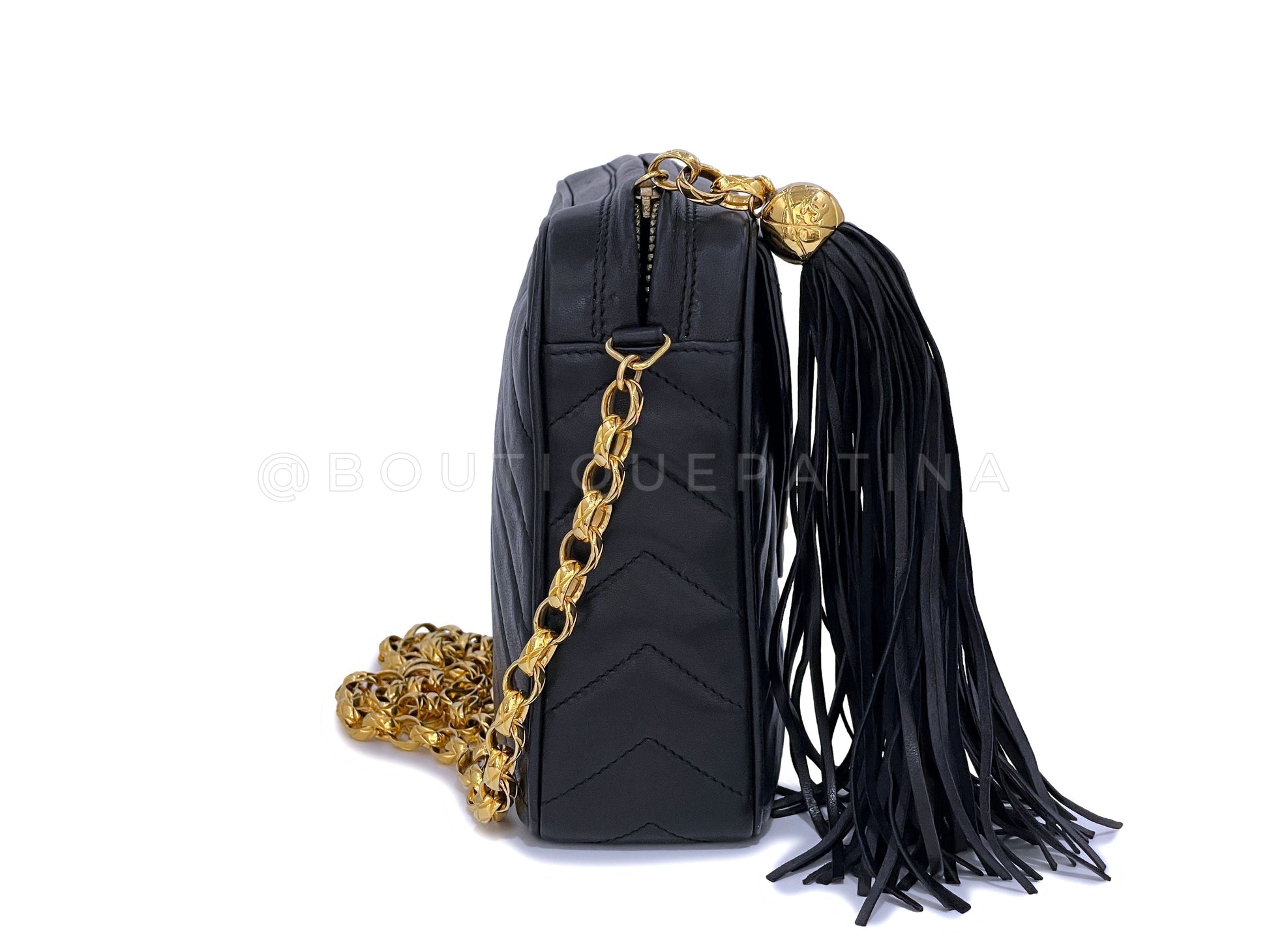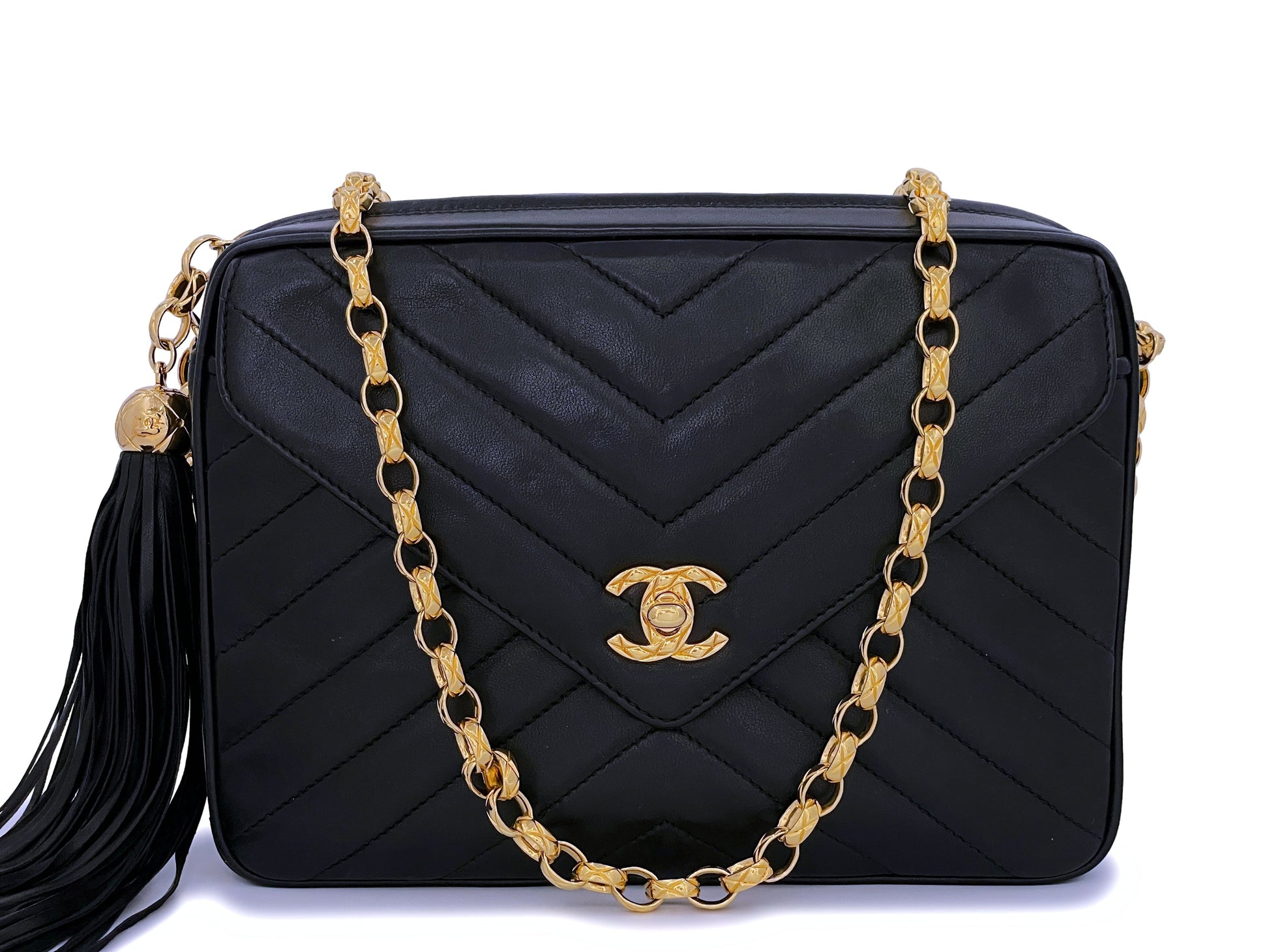 Pristine Chanel 1992 Vintage Black Envelope Chevron Camera Case Bag 24k GHW