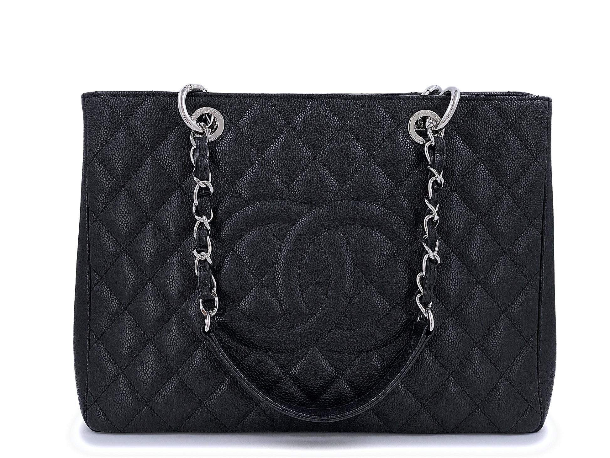 Pristine Chanel Black Caviar Grand Shopper Tote GST Bag SHW