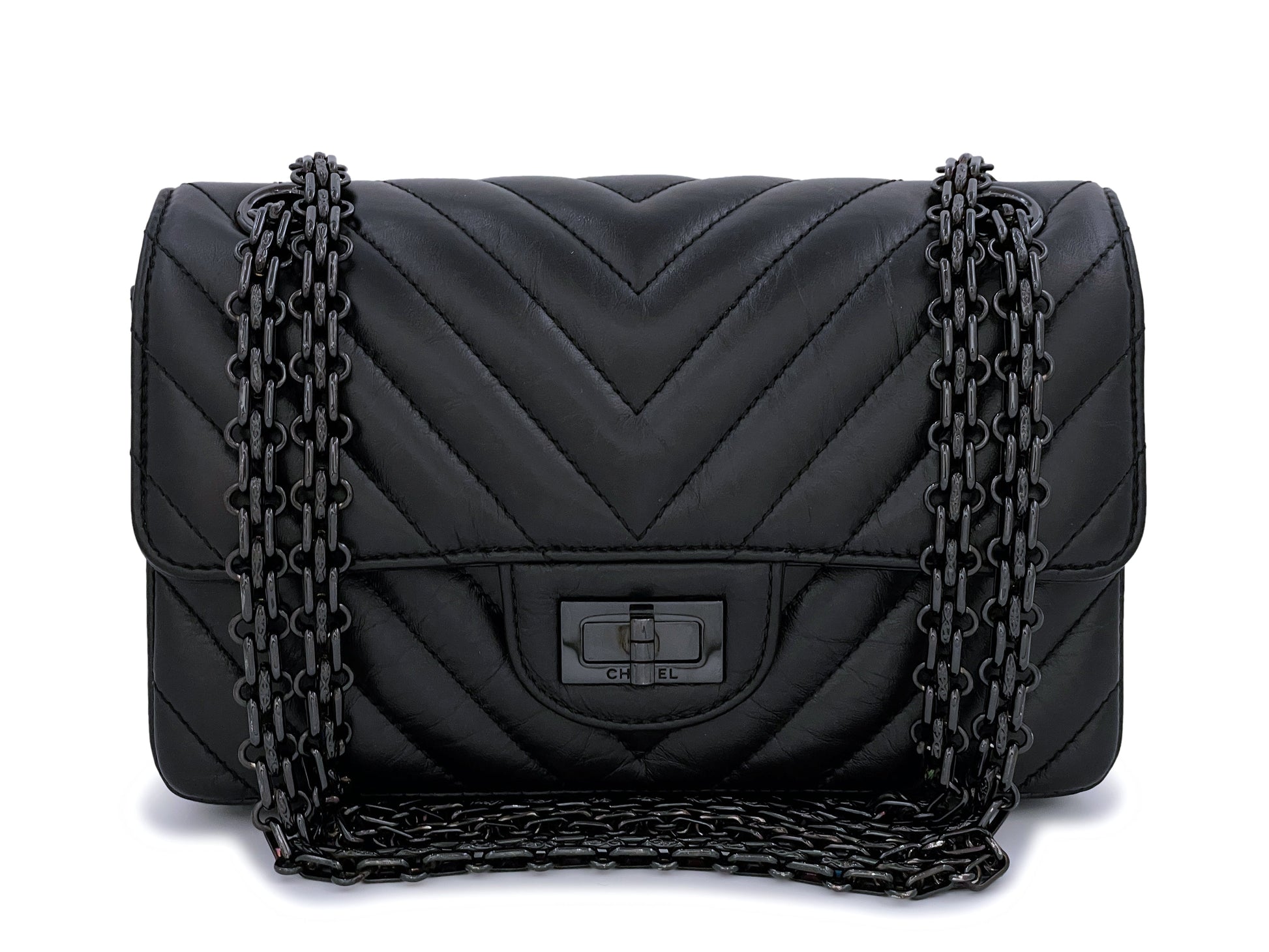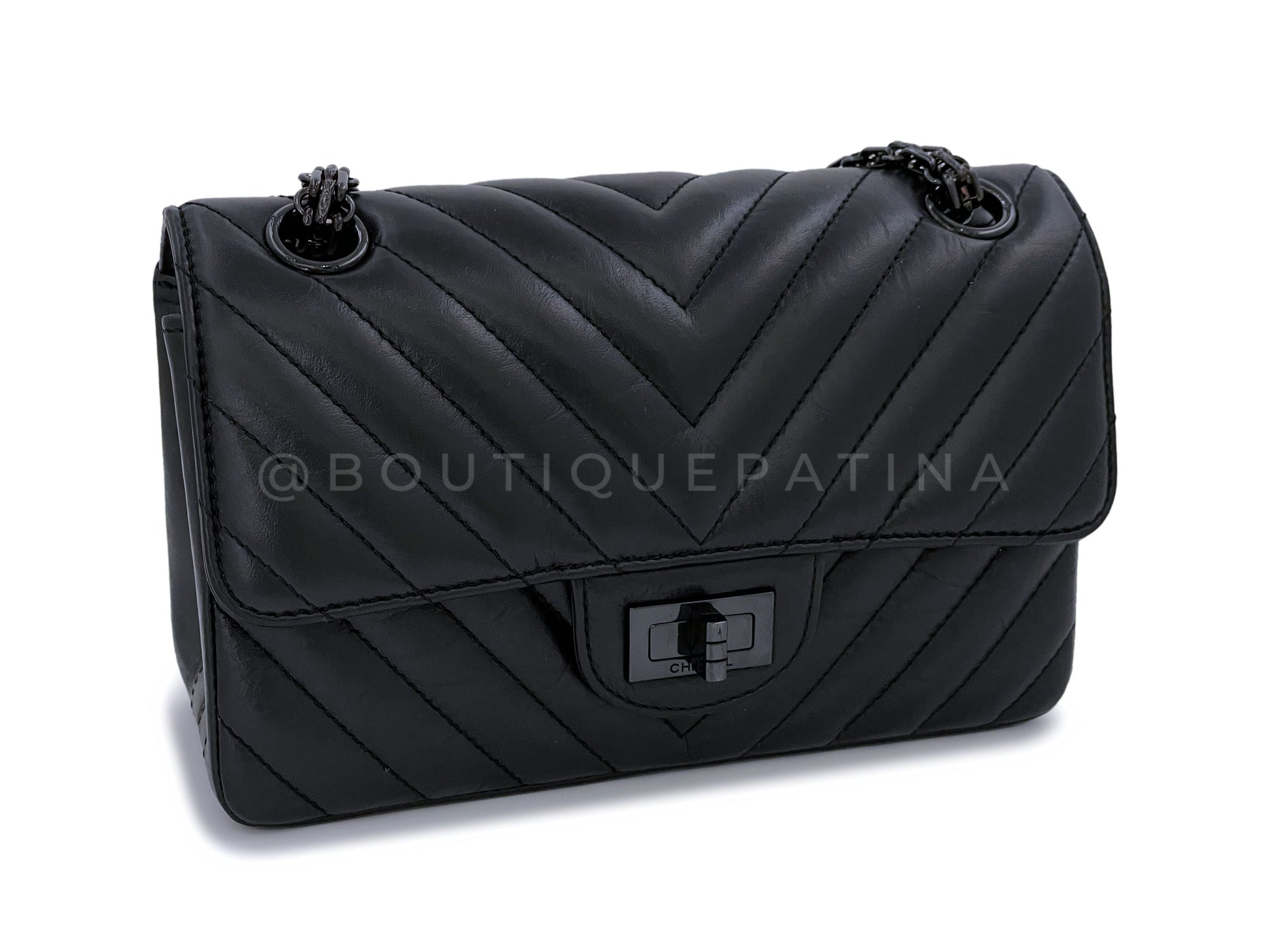 Pristine Chanel So Black Chevron Reissue Rectangular Mini 224 Flap Bag