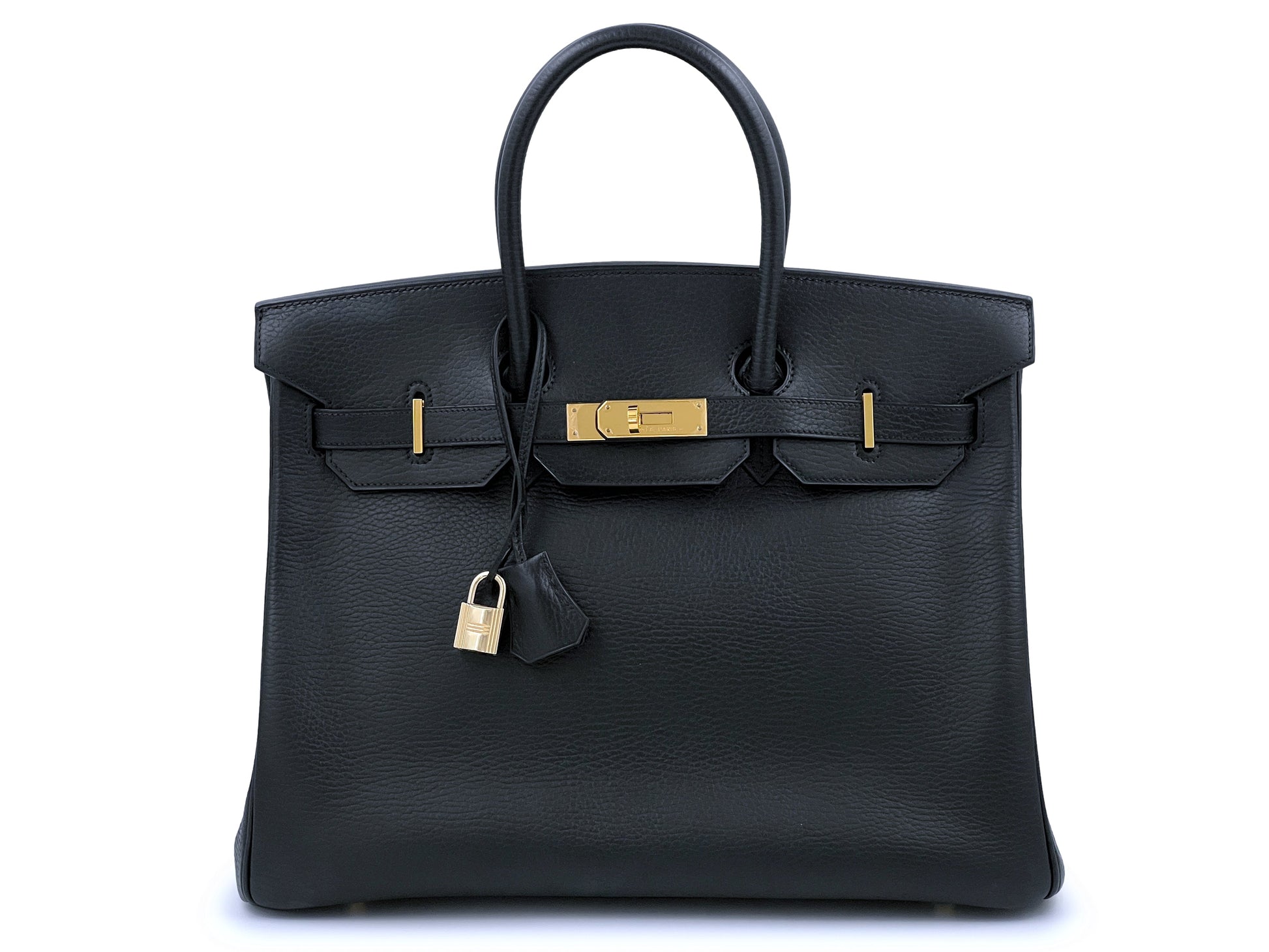 Pristine Hermes Black Birkin 35 Bag Ardennes Tote 24k GHW