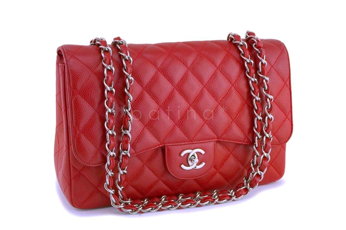 Rare 10C Chanel Red Caviar Jumbo Classic Flap Bag SHW