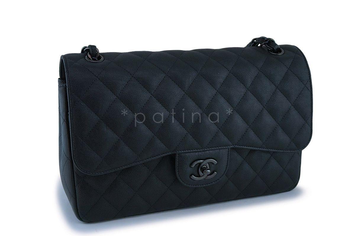 Rare Chanel So Black Crumpled Calf Jumbo Classic Double Flap Bag