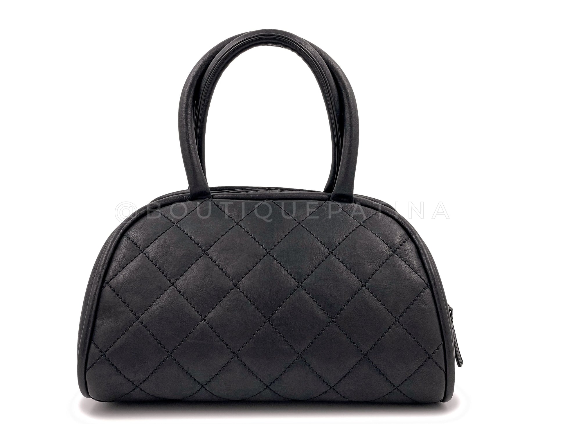 Rare Chanel Vintage Curved Black Timeless Bowler Bag