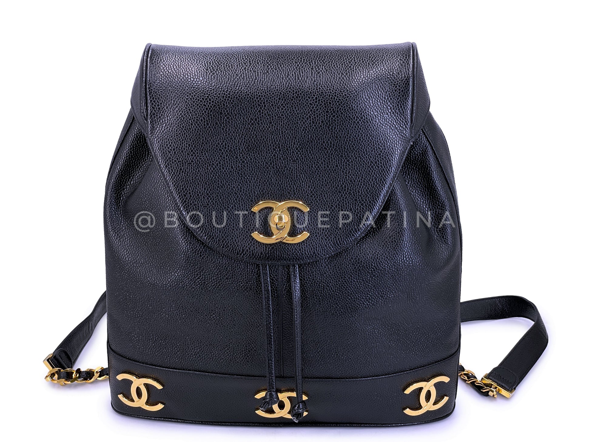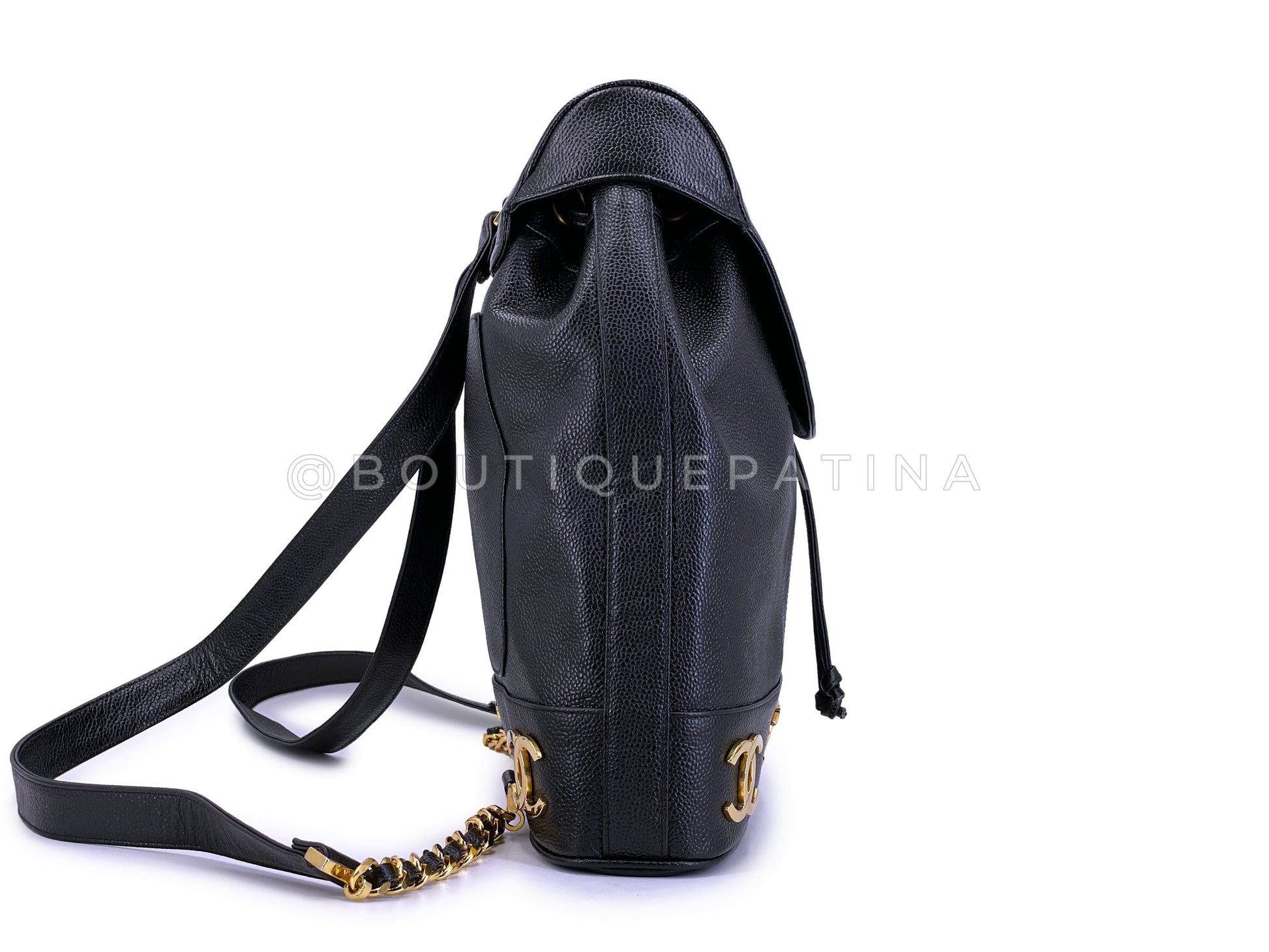 Rare Pristine Chanel 1994 Vintage Black Caviar Triple CC Large Backpack Bag 24k GHW V27