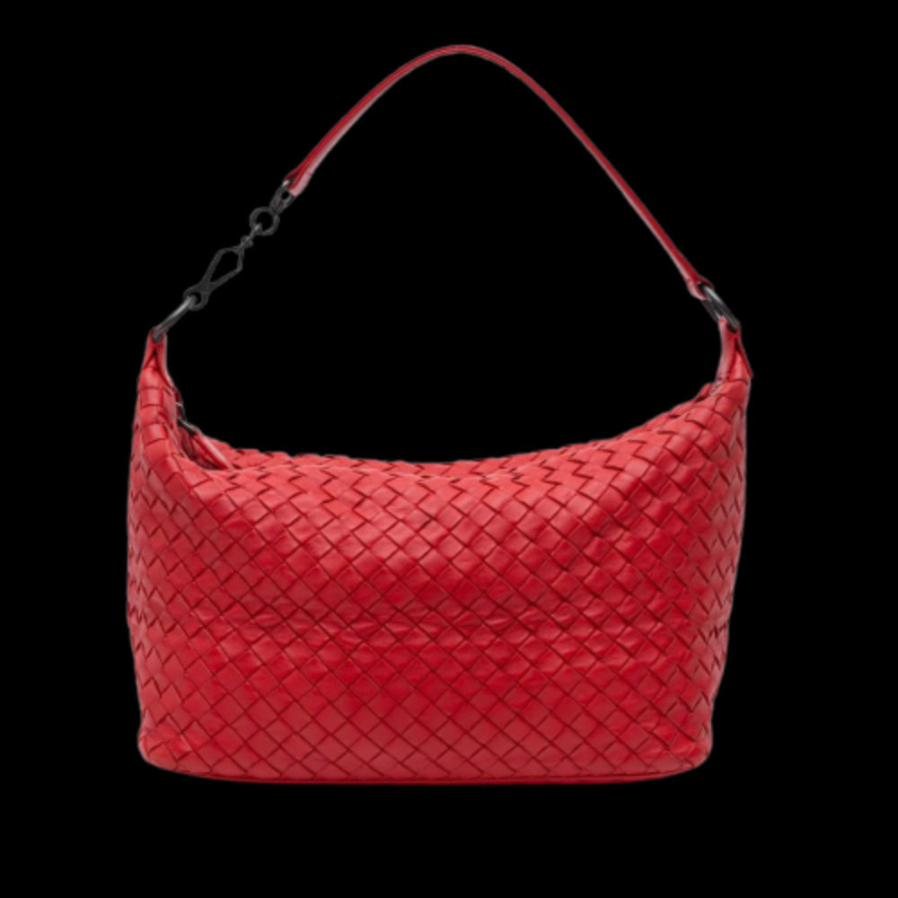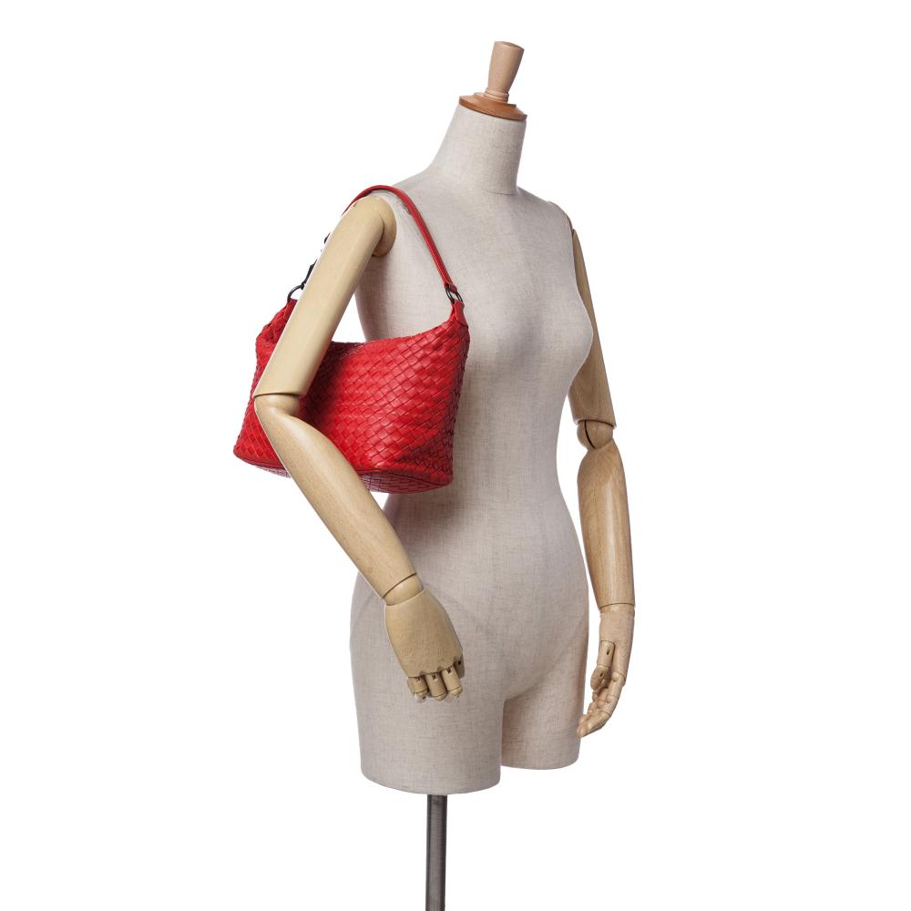 This shoulder bag features a woven nappa leather body, a flat leather strap, and a top zip closure. It carries a B+ condition rating.Exterior Back Creased. Exterior Back stained with Other. Exterior Bottom Worn. Exterior Corners Worn. Exterior Front Creased. Exterior Front stained with Other. Exterior Handle Worn. Interior Lining stained with Other. Practical Attachment Scratched. Exterior Side Creased, Worn. Exterior Top Worn. Zipper Scratched. Dimensions:Length 25cmWidth 12.5cmHeight 17.5cmShoulder Drop 21.5cmOriginal Accessories: This item has no other original accessories.Serial Number: BO2464493BColor: RedMaterial: Leather x Nappa Leather