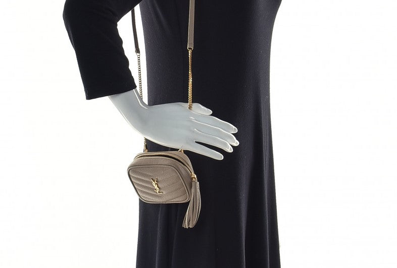 SAINT LAURENT Beige Grain De Poudre Matelasse Monogram Baby Lou Camera Bag