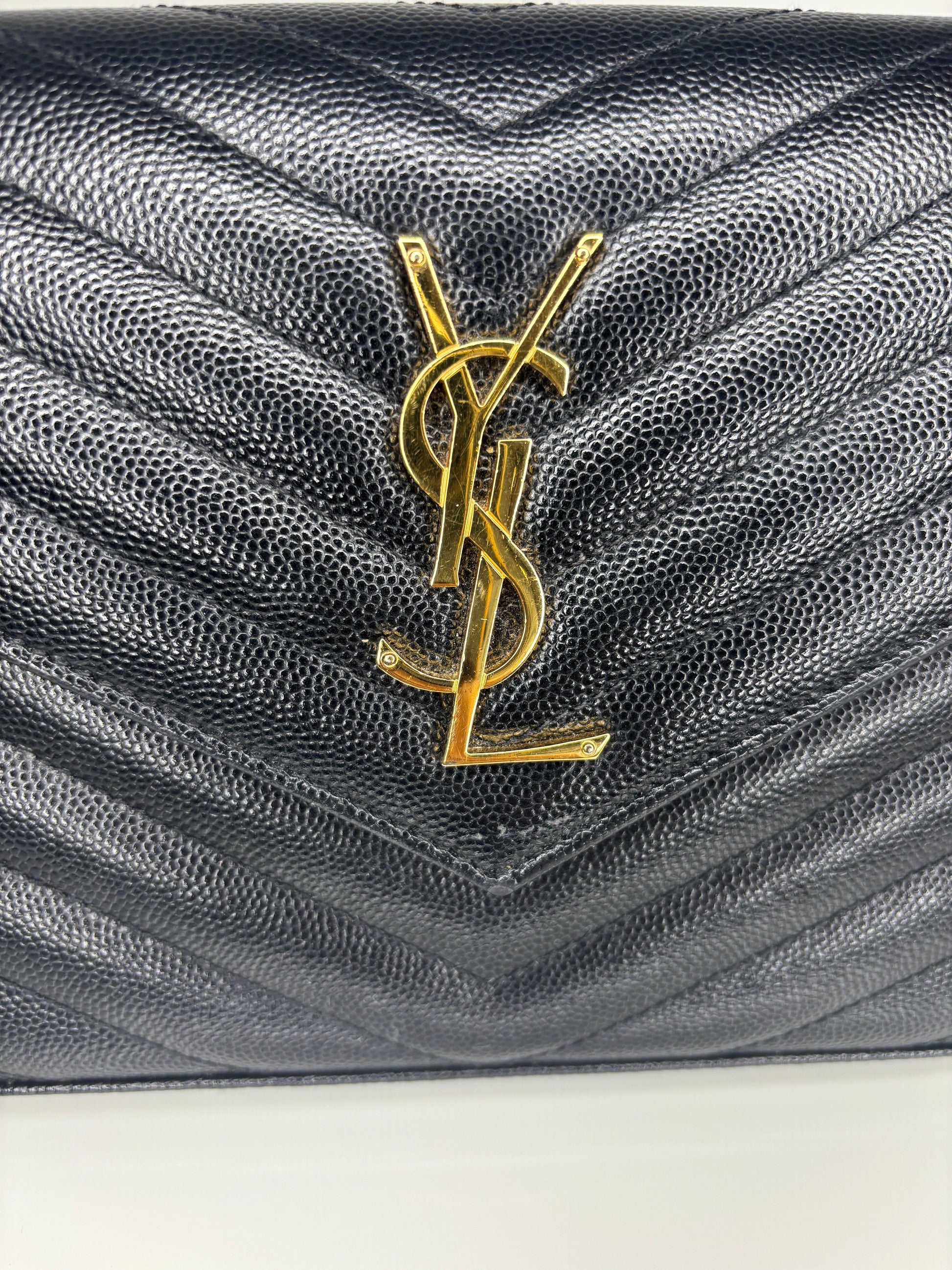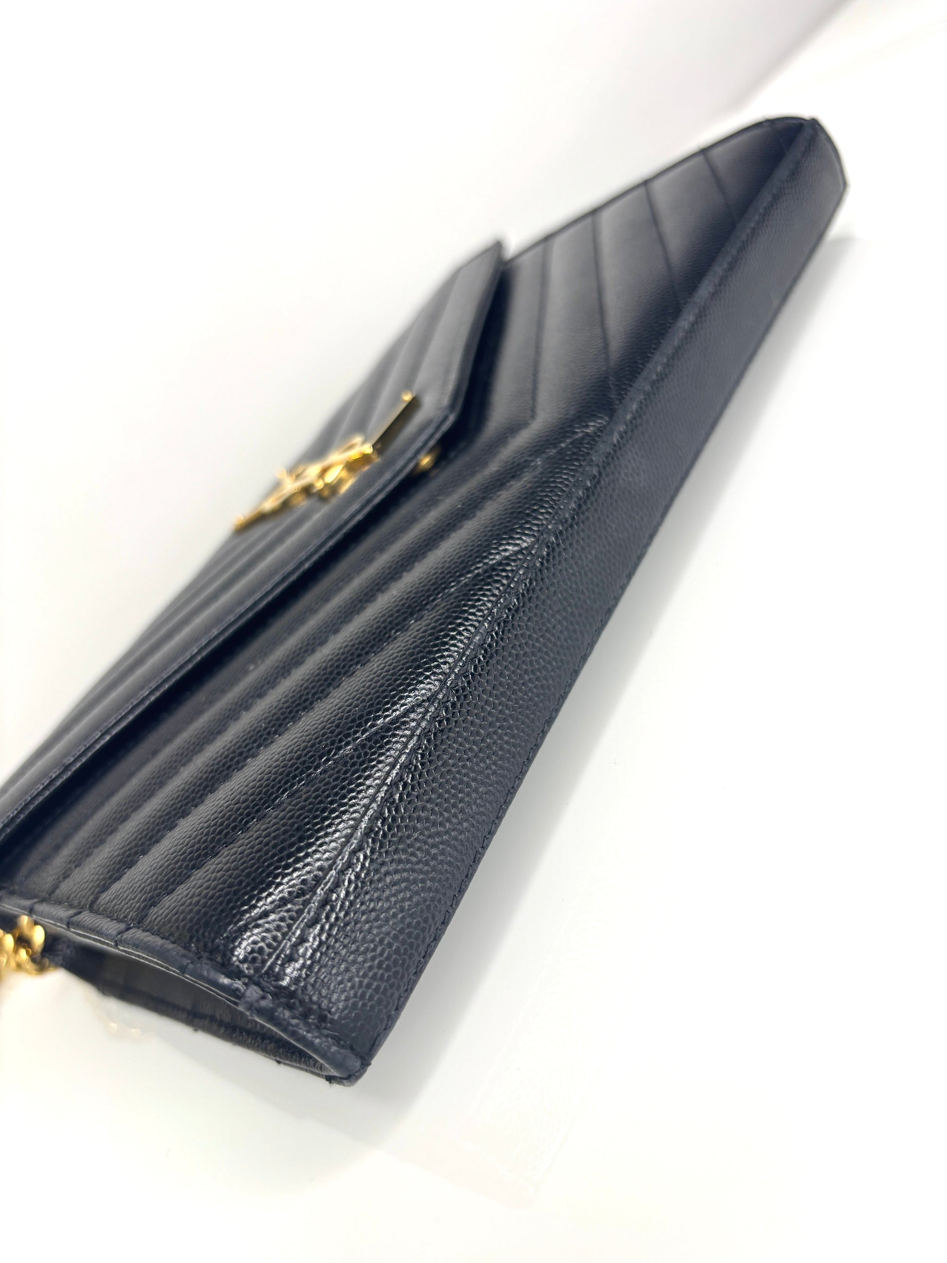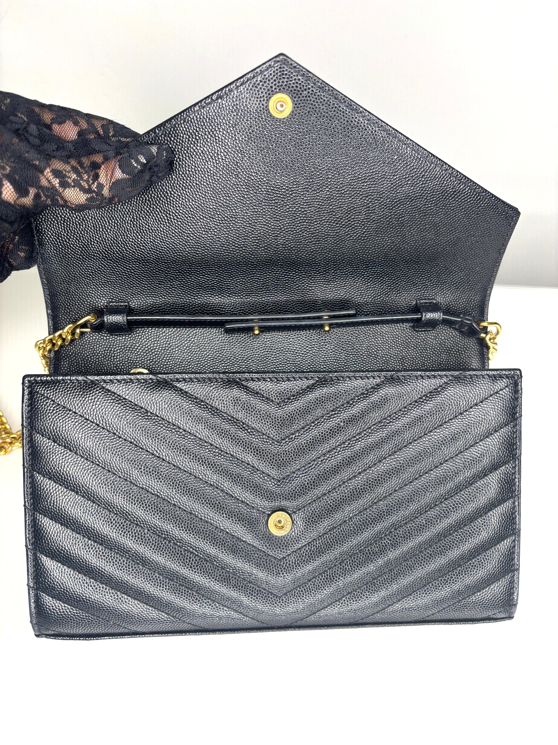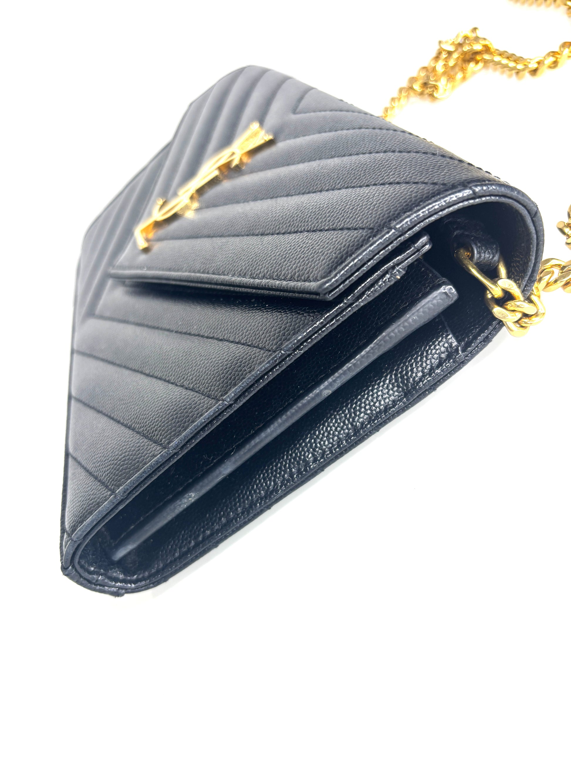 Saint Laurent Preloved YSL Cassandre Black Grain De Poudre Chain Wallet Cross-Body Bag