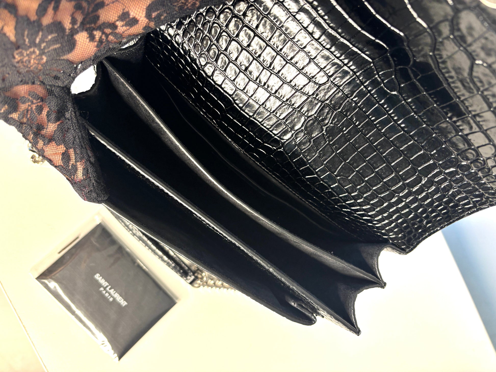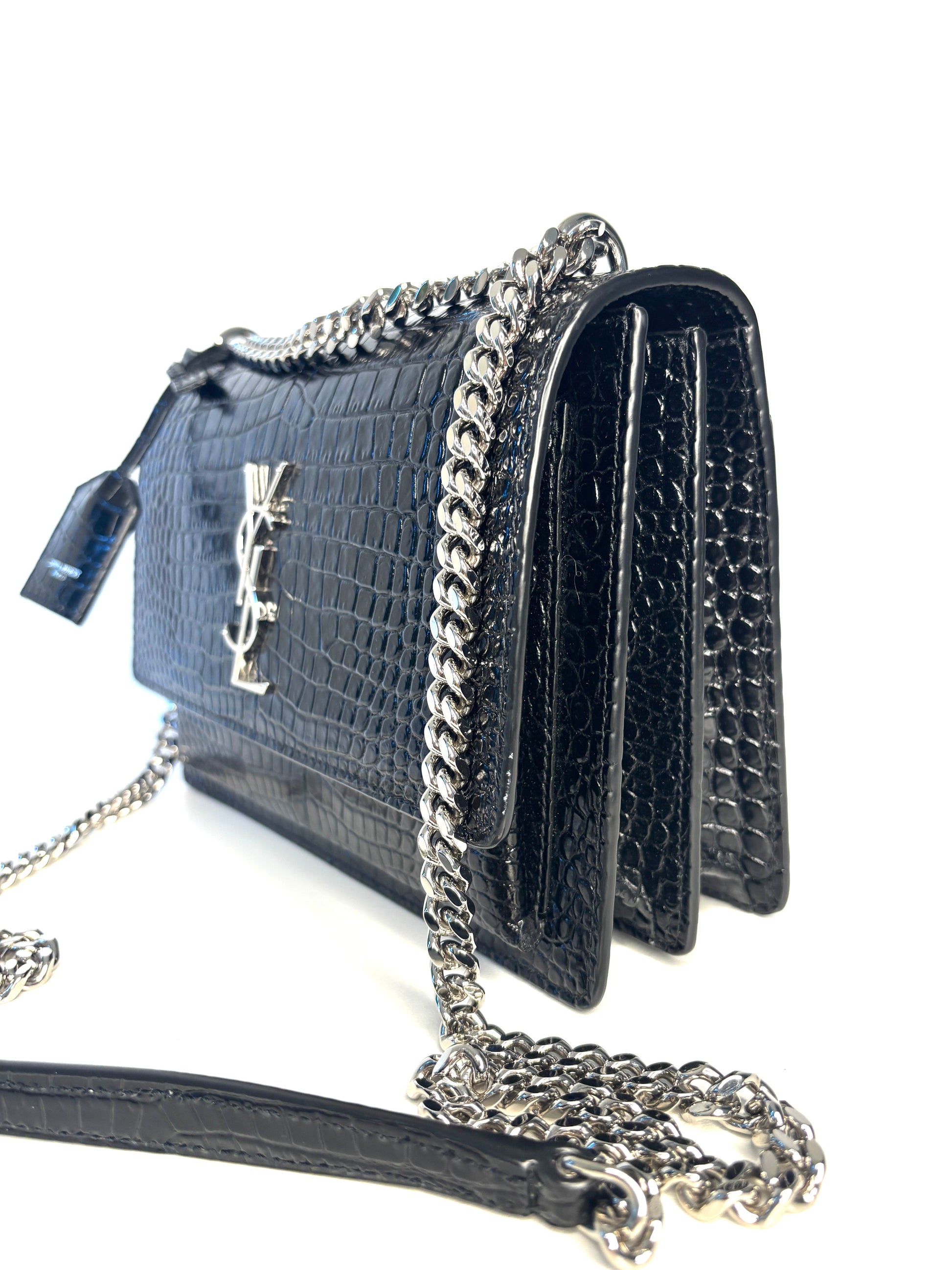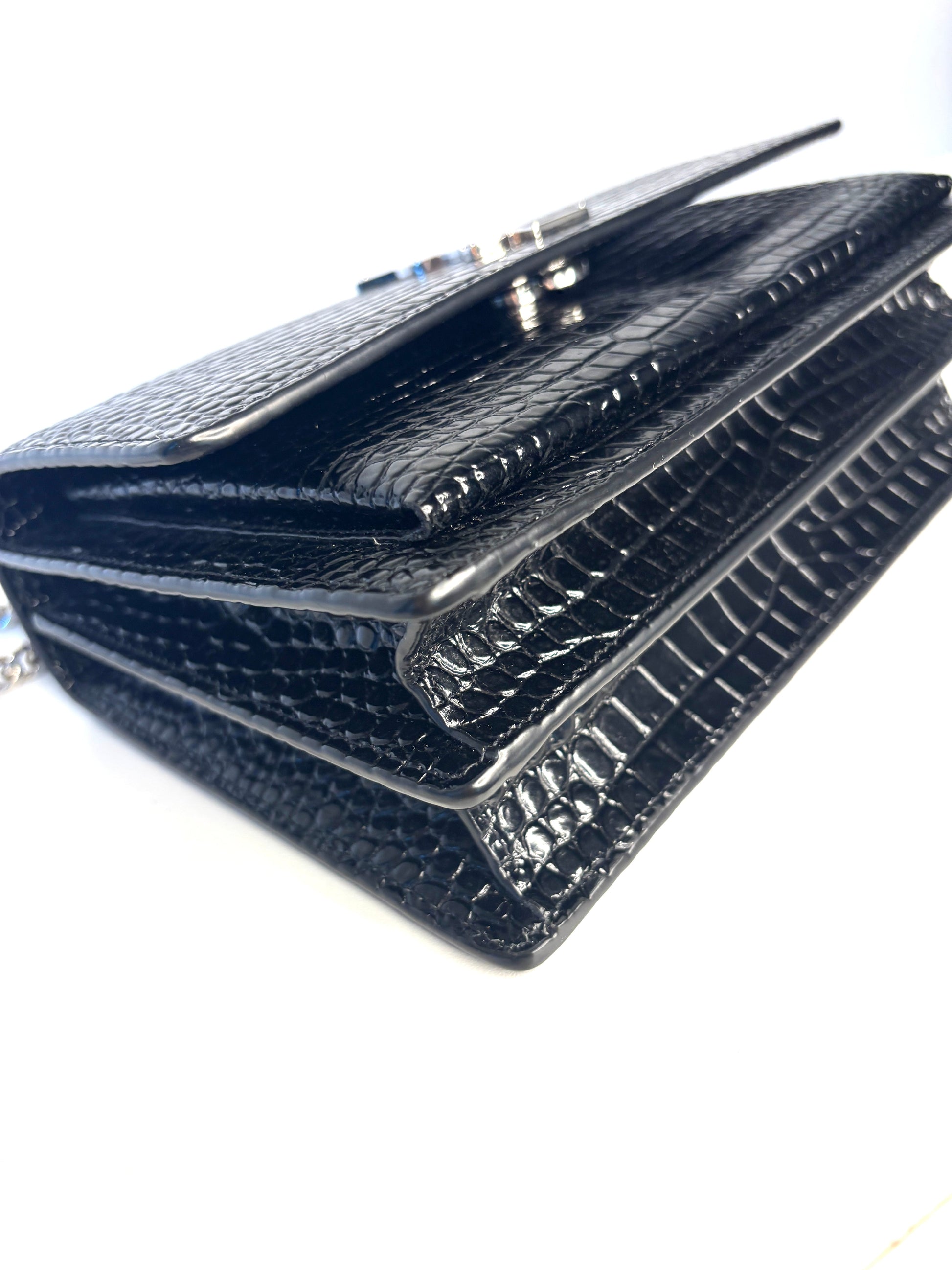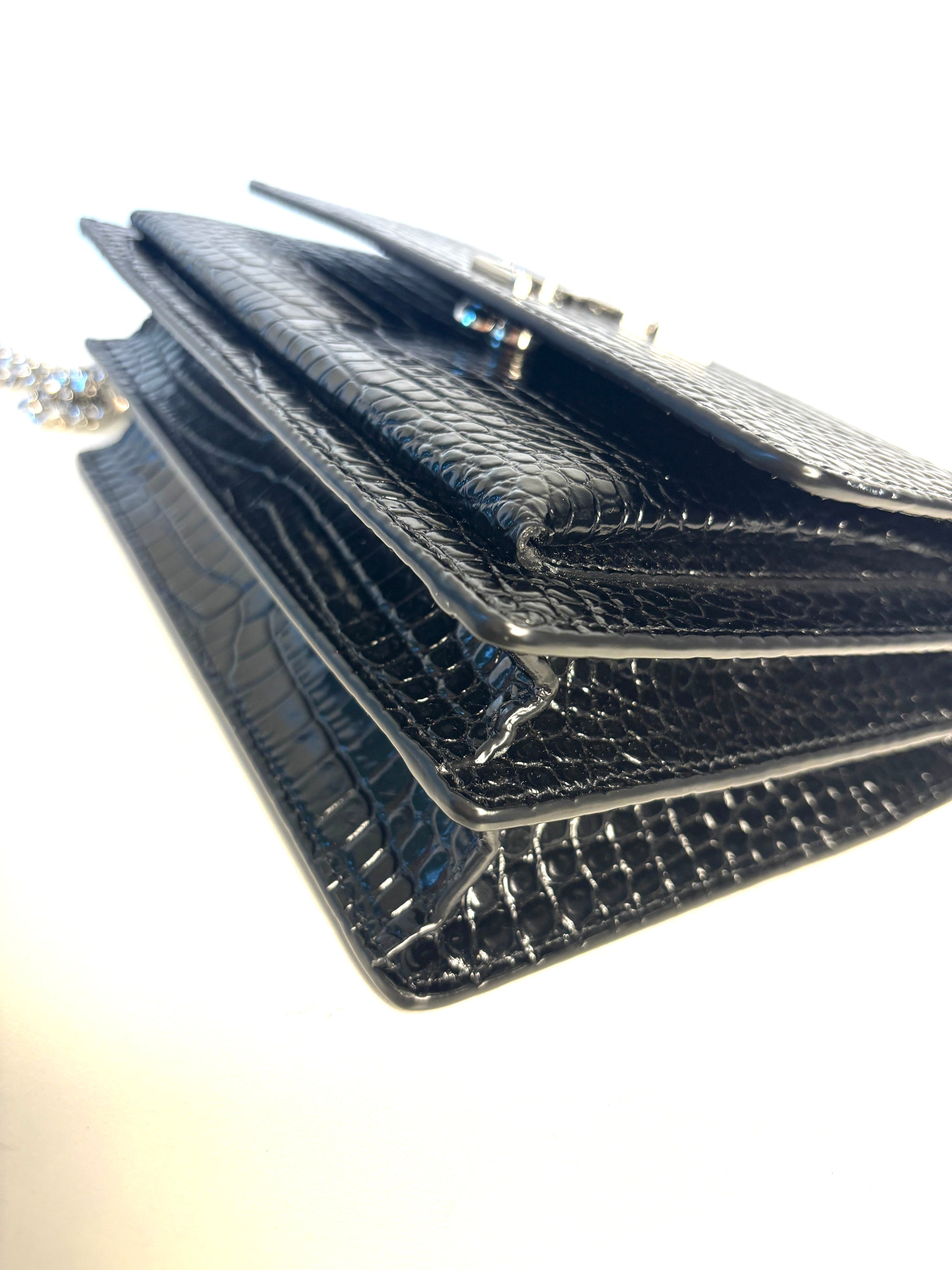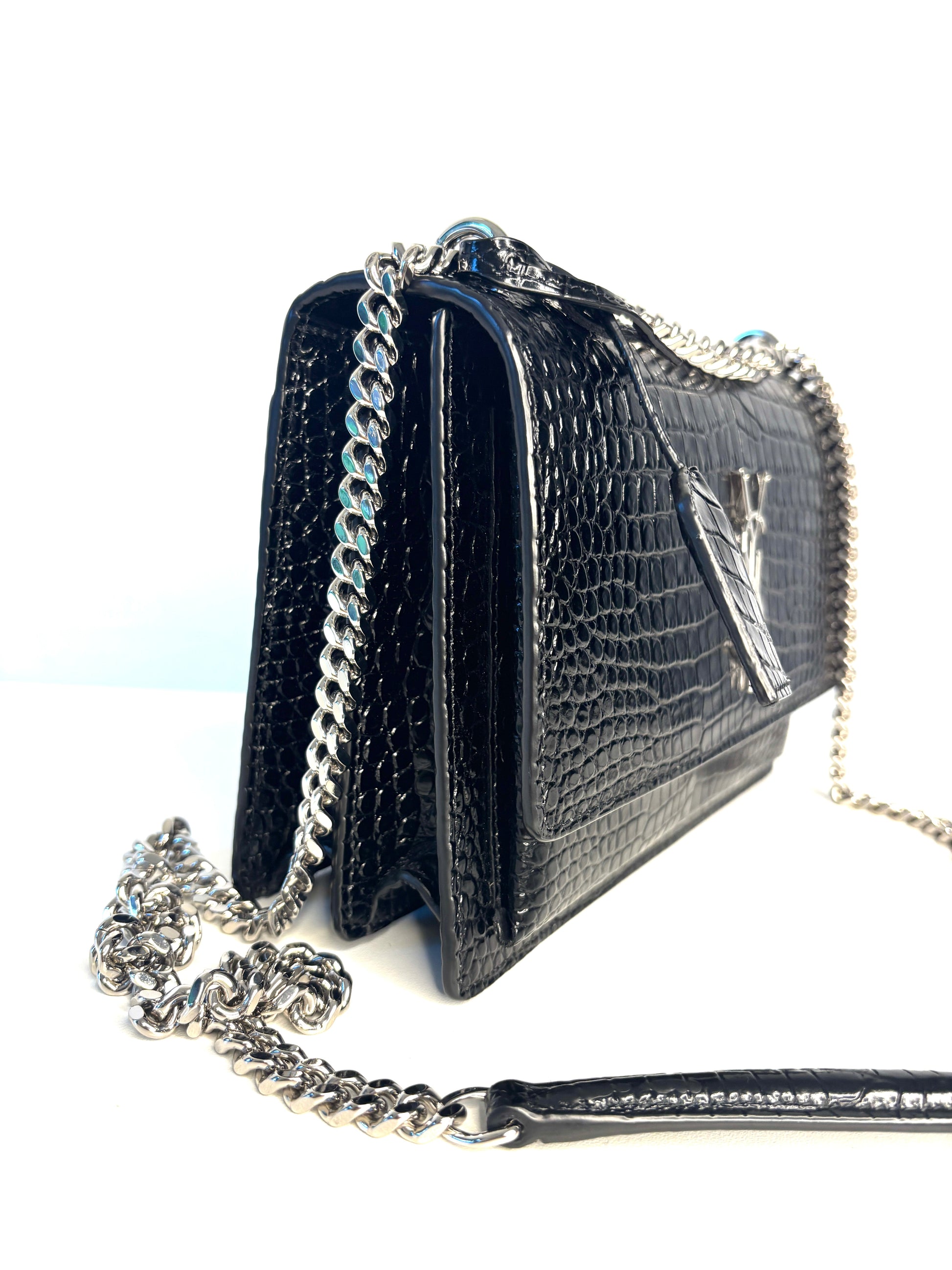 Saint Laurent Sunset Croc-Effect Black Medium Shoulder Bag - Preloved (Like New)