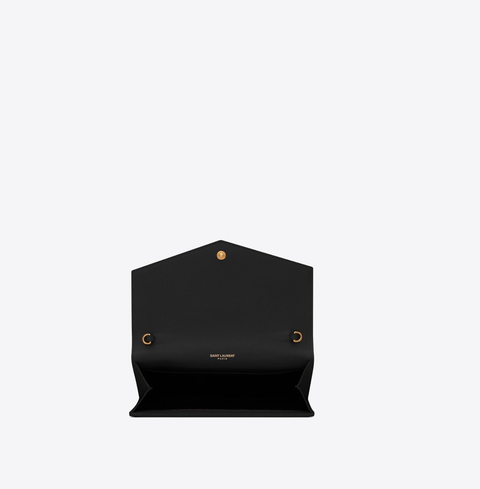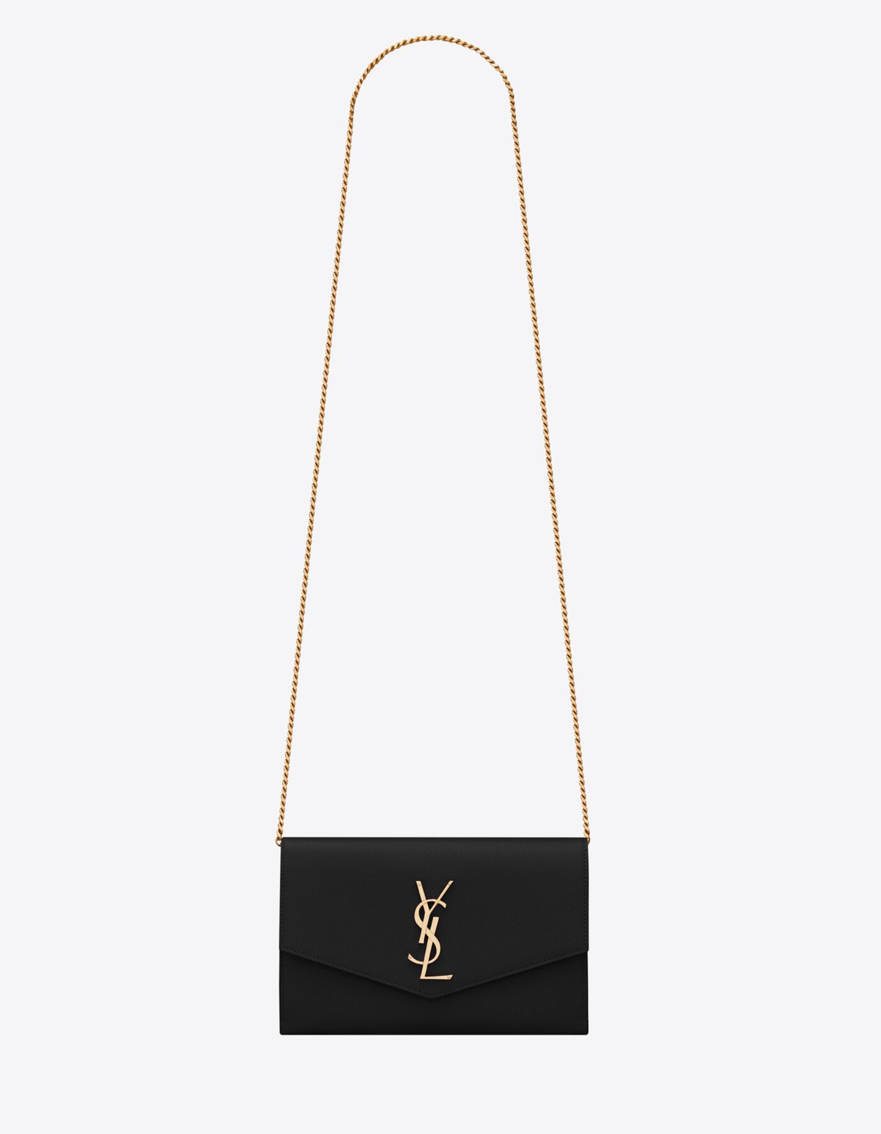 SAINT LAURENT UPTOWN CHAIN WALLET IN GRAIN DE POUDRE EMBOSSED LEATHER