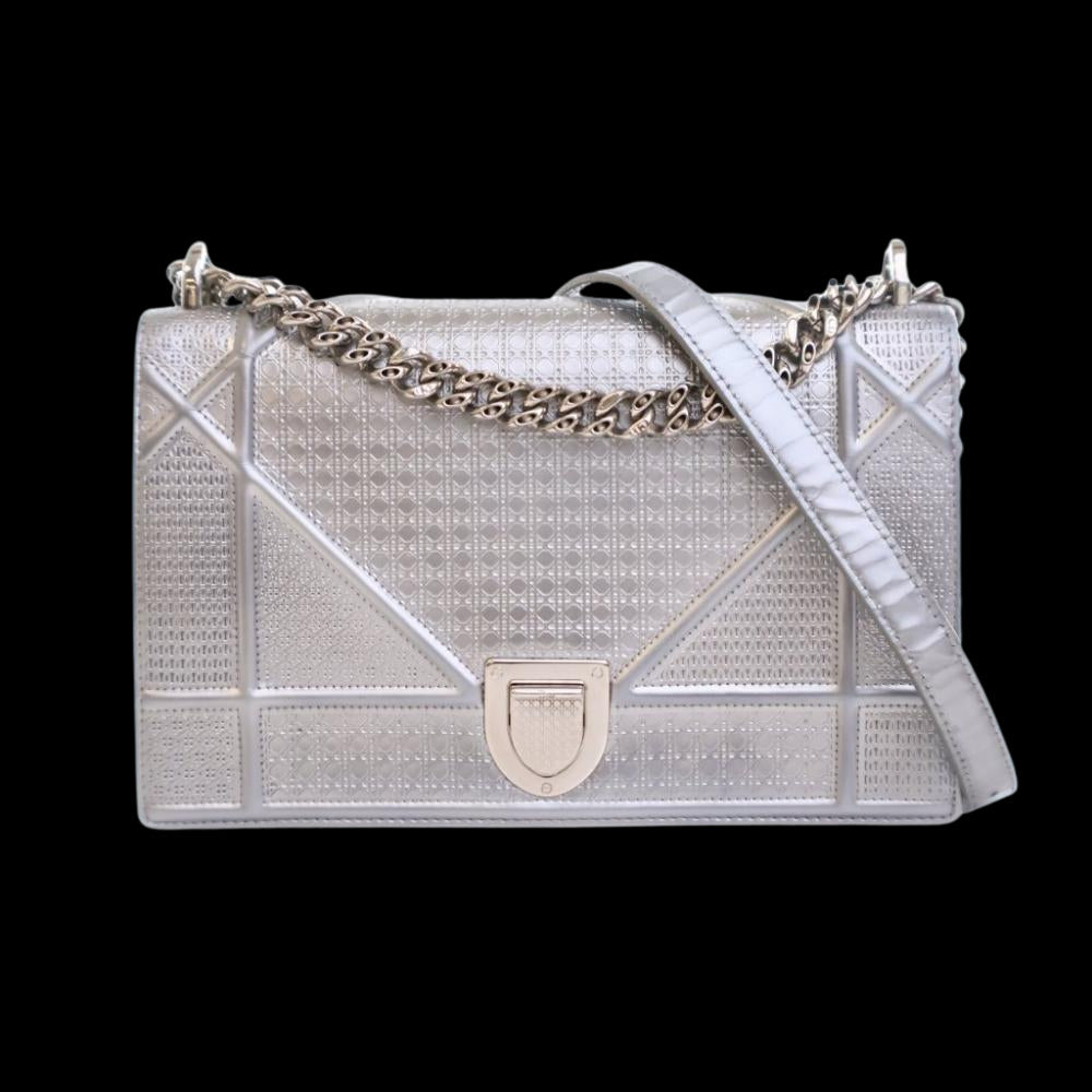 Silver Leather Dior Shoulder Bag