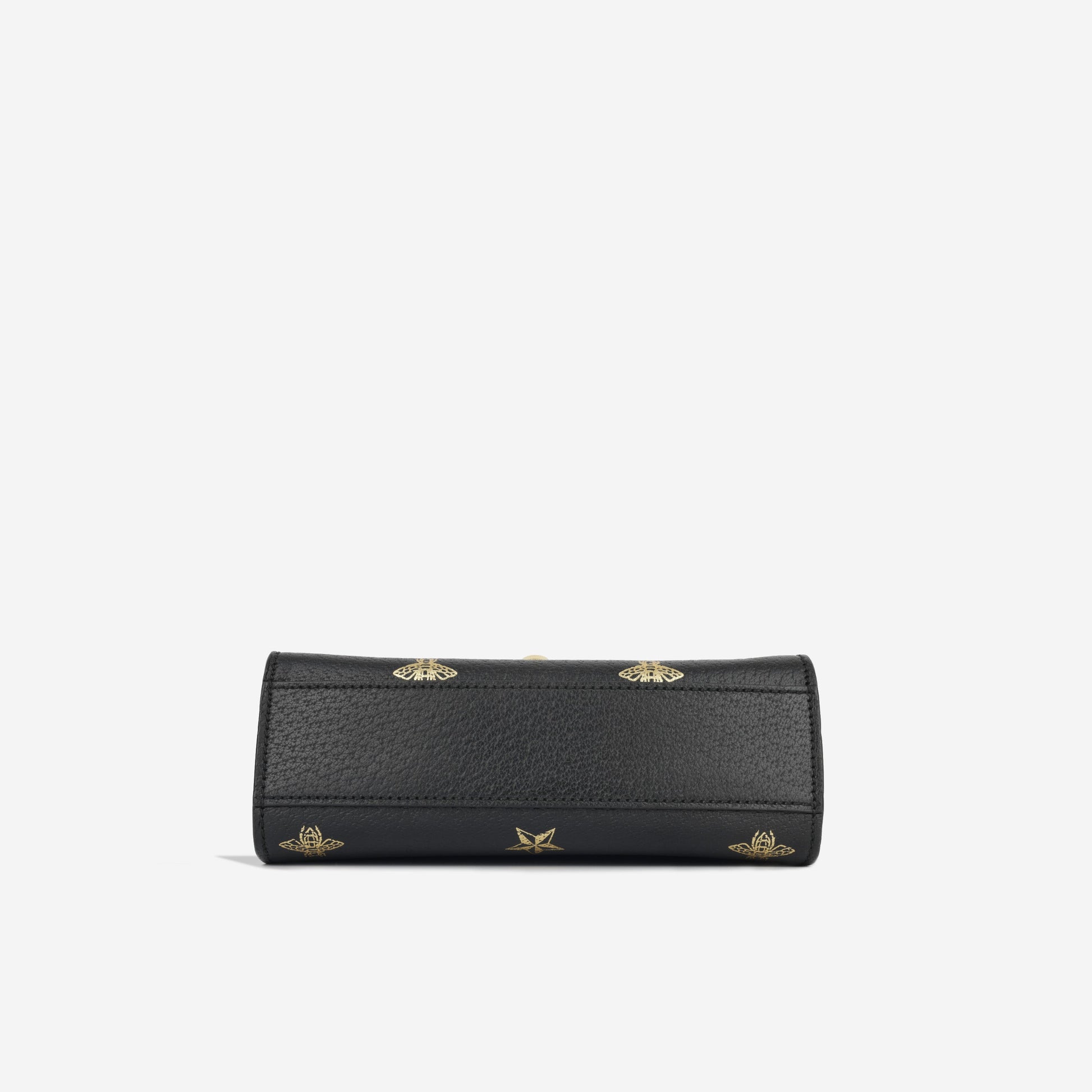 A structured shoulder bag with a key lock closure inspired by Gucci's archives. Recognised for its discreet elegance, this classic style is perfect for the woman who appreciates understated glamour. Crafted from black calfskin, it features an embossed bee and star motif for a touch of sophistication. Elevate your look with this compact yet iconic accessory that seamlessly transitions from day to night.