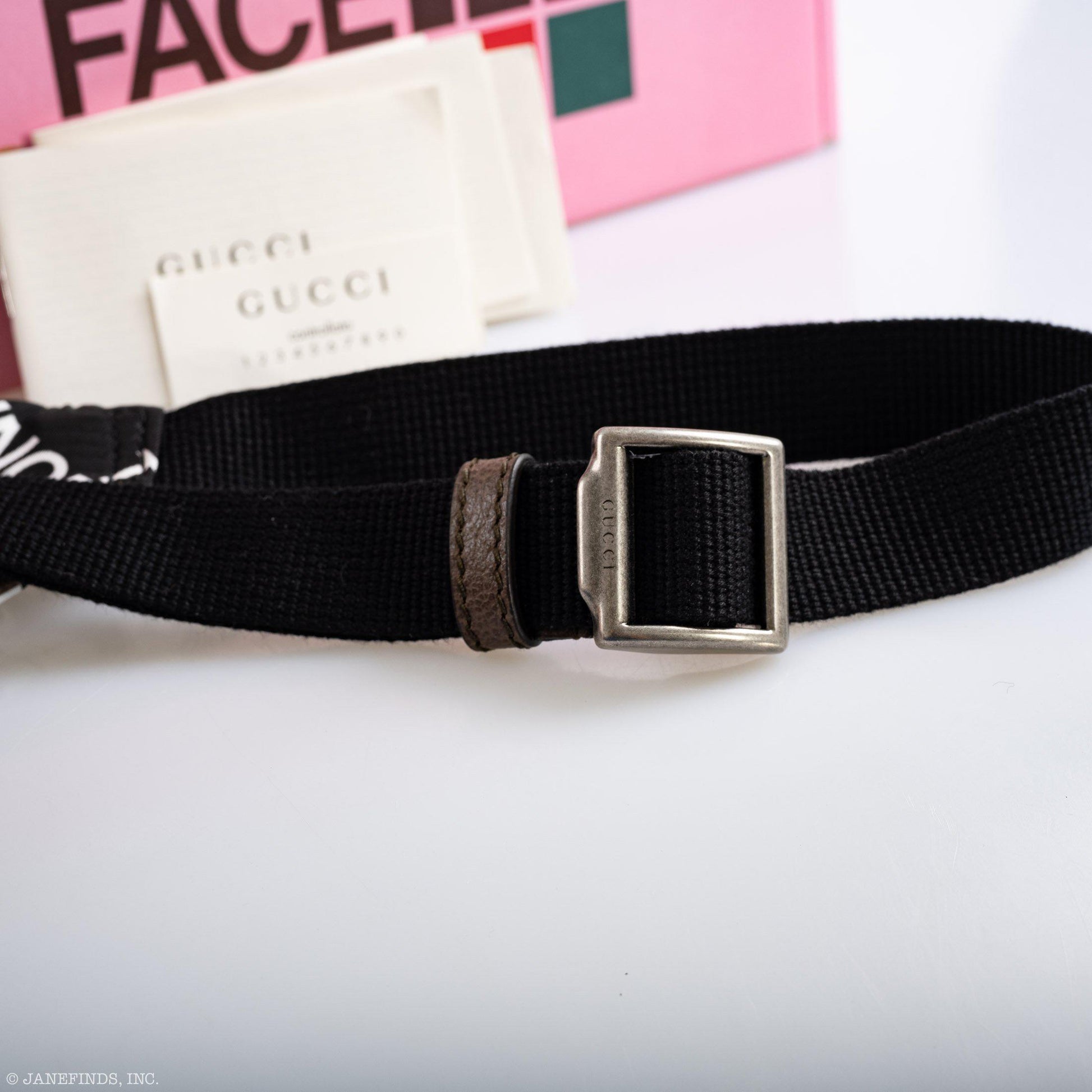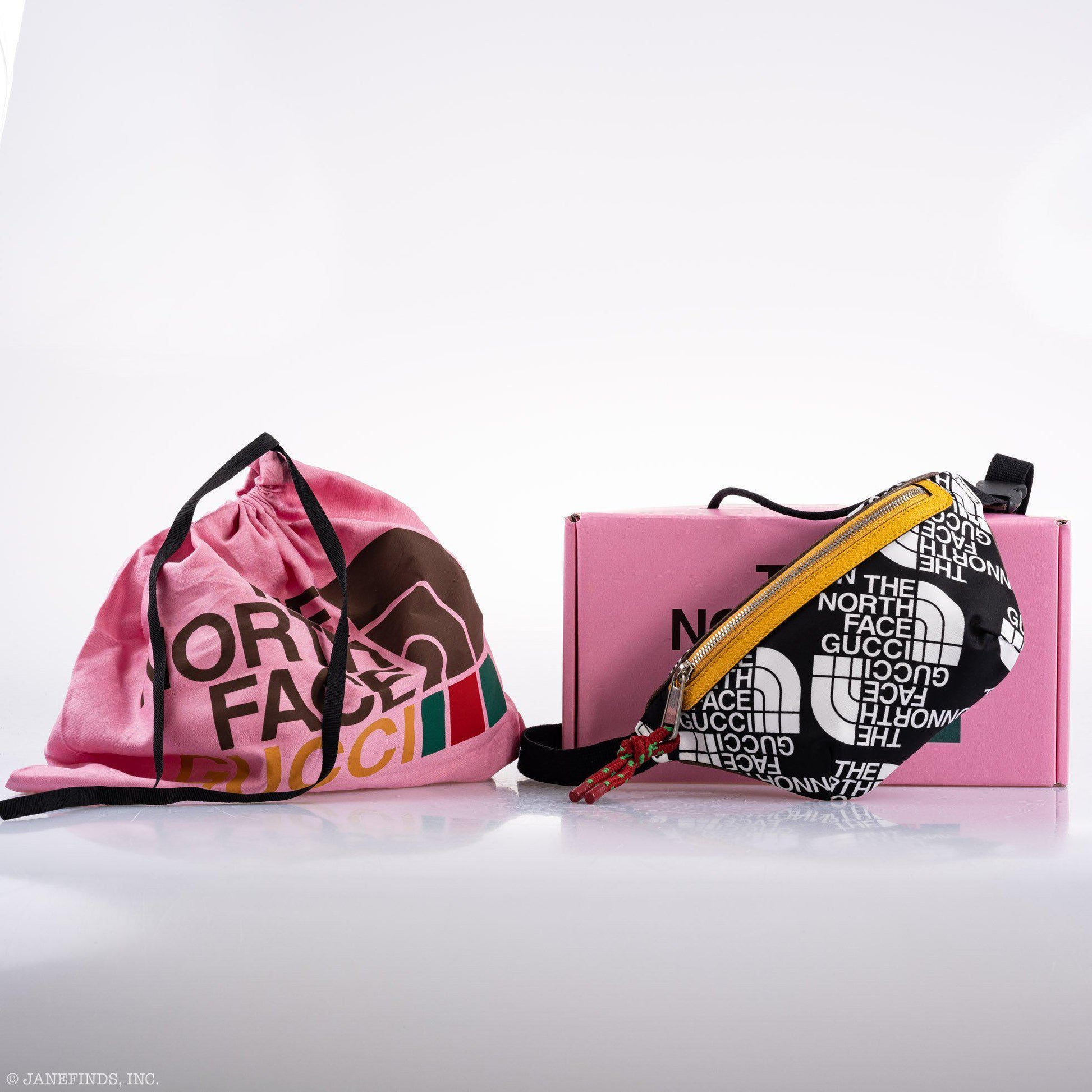 This belt bag is part of The North Face x Gucci collection, a collaboration connecting two brands with similar history and values in celebration of the spirit of exploration. The North Face has a rich archive pushing innovation and breaking the rules in creating styles with unique and distinguishing design details. As a brand that has embraced inclusivity, beginning with supporting women to achieve results in a male-dominated pursuit, its mission for its creations is to help adventurers make physical discoveries but also discover their self while doing so. The cross-category collection for men and women includes ready to wear, soft accessories, luggage and shoes.