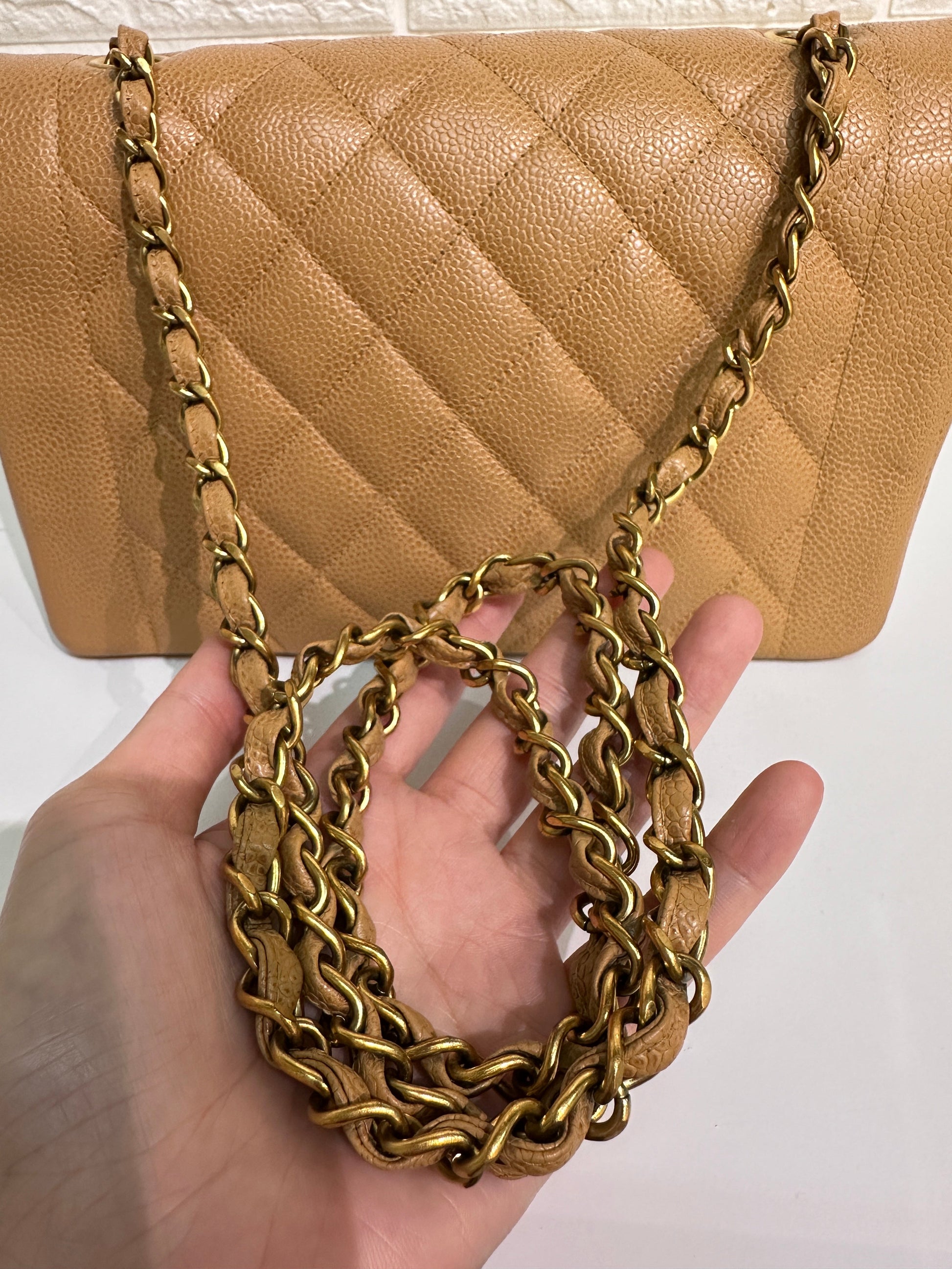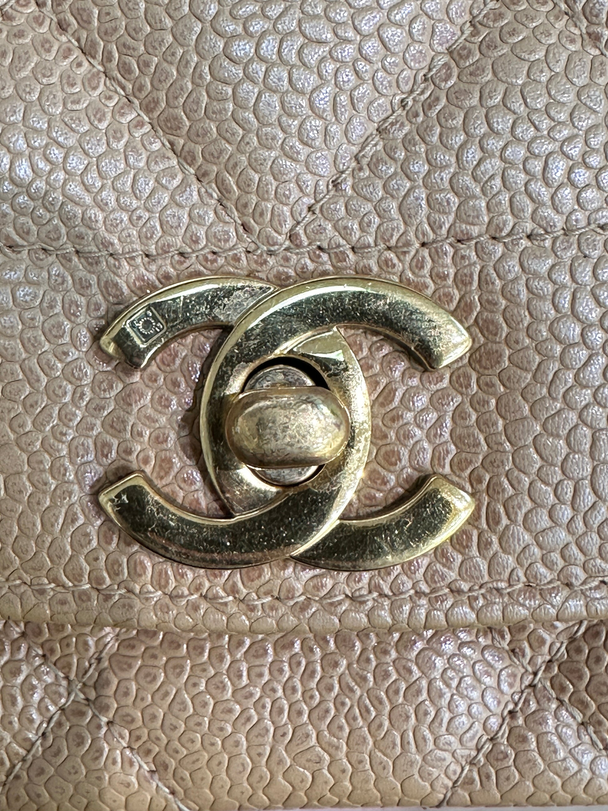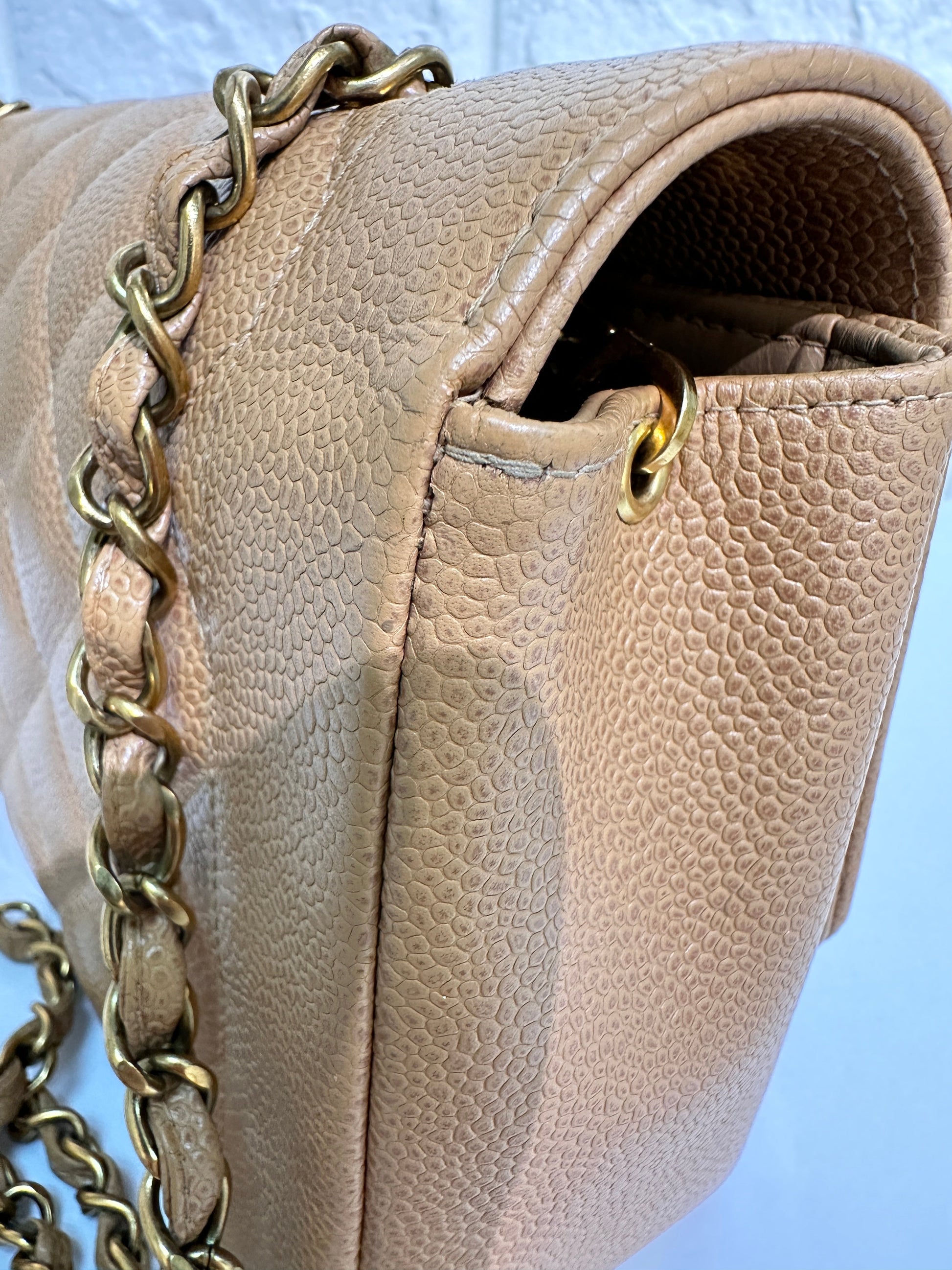 Chanel Medium Vintage Diana Flap Bag Beige Caviar Gold Hardware