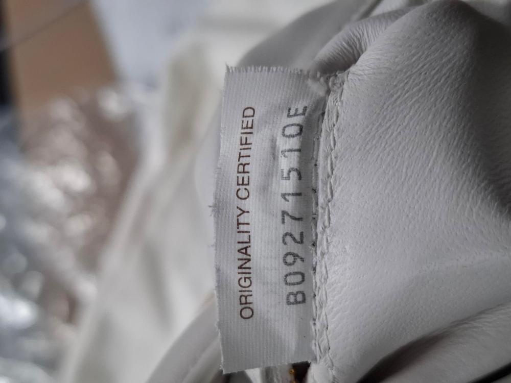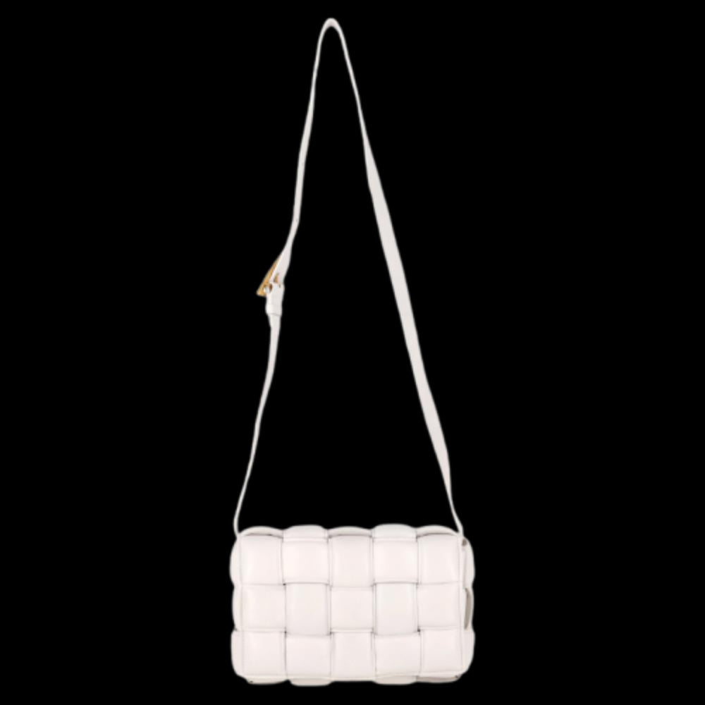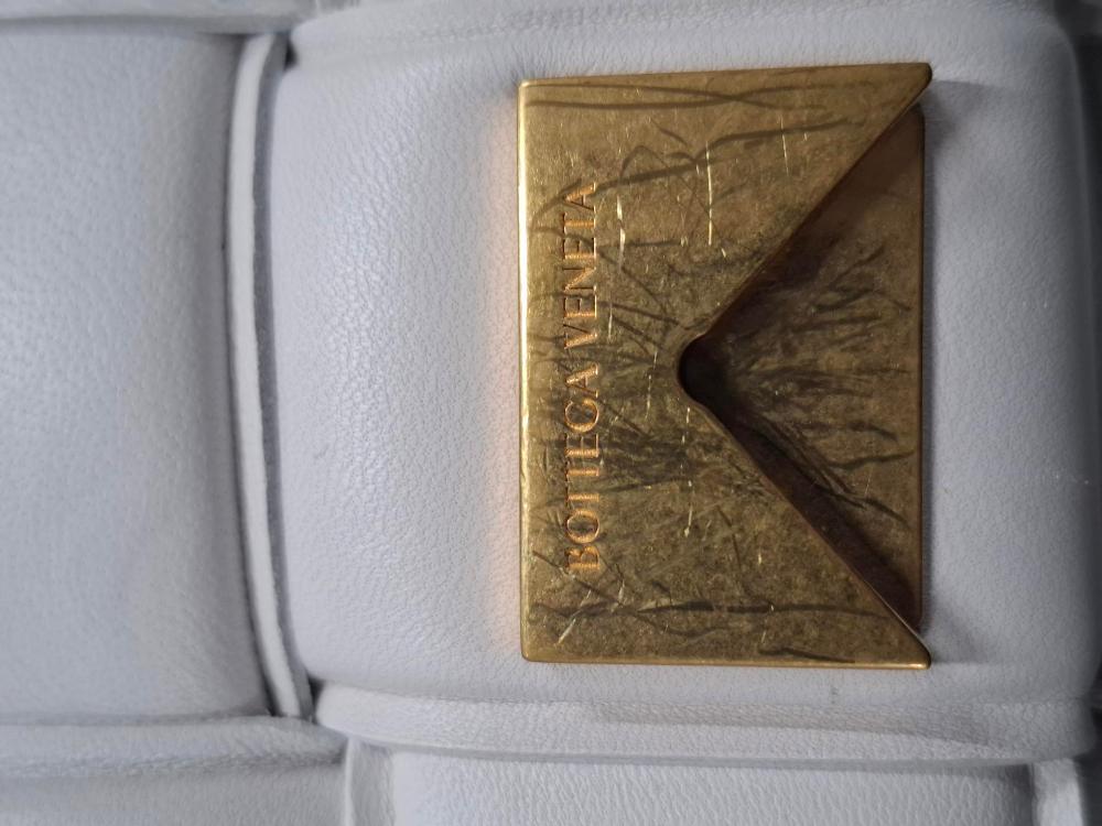 The Bottega Veneta Padded Cassette in white leather is an icon of modern craftsmanship. Handwoven in the house’s signature intreccio technique and finished with plush padding, this crossbody masterpiece features a gold-finish metal closure and a bonded lambskin lining for a luxe tactile experience. A softly structured silhouette that blends minimalism with quiet opulence.