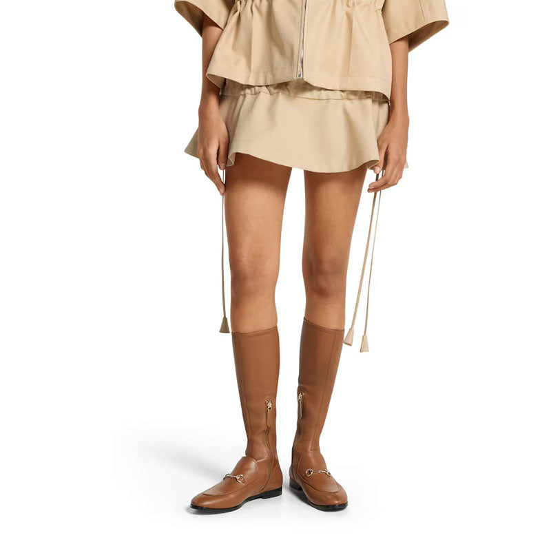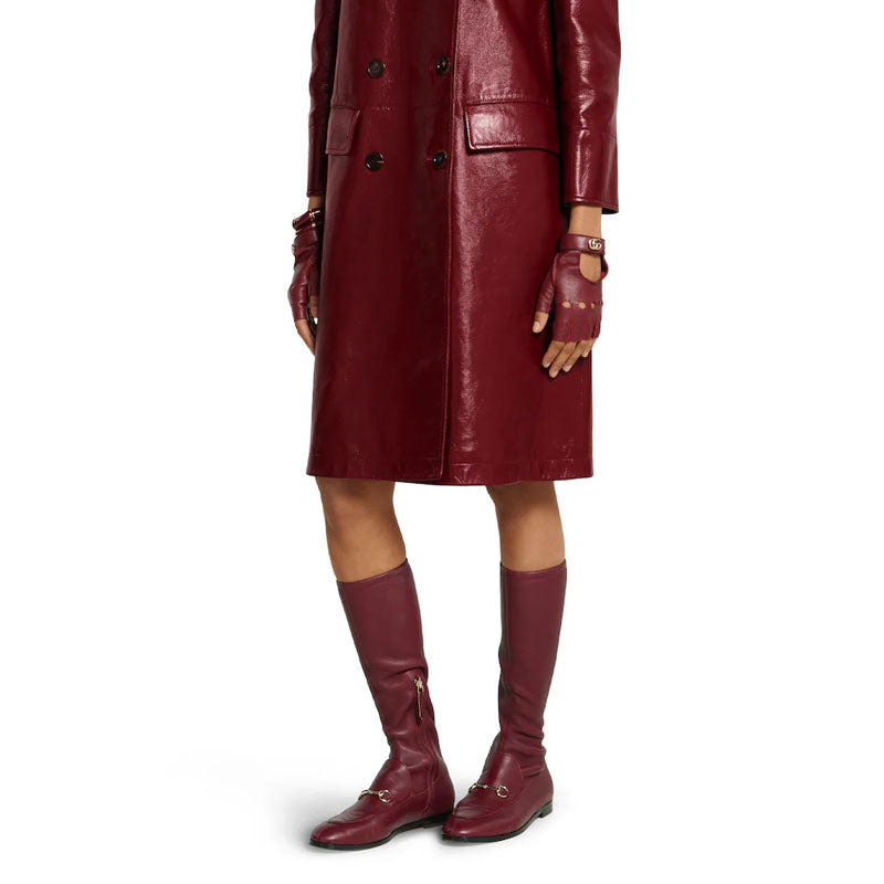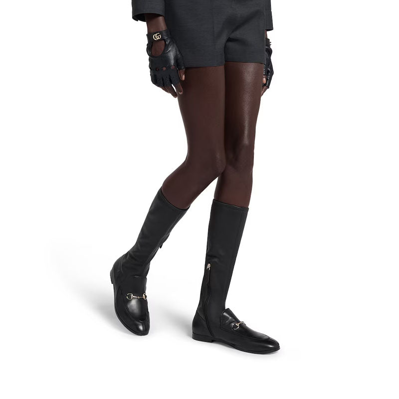 In the Spring Summer 2025 collection, the Gucci Jordaan introduces a modern boot silhouette, reinterpreting the House's signature loafer with a soft stretch leather shaft, offering comfort and elegance.