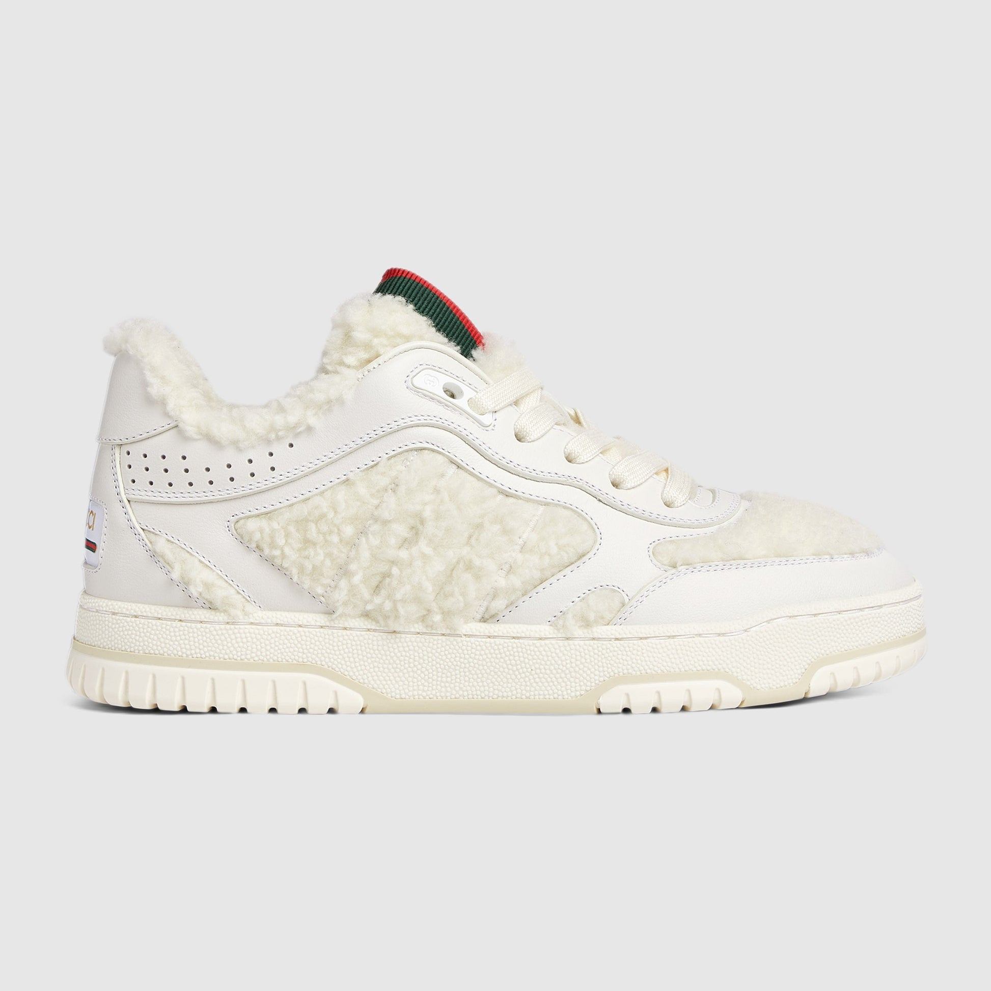 The first sneakers envisioned by Sabato De Sarno for the House, the Re-Web sees Gucci’s heritage stripes as a bold statement detail on a contemporary silhouette. This pair is crafted from white merino wool-effect fabric. Defined by multiple iconic details, this new sneaker takes center stage with the bold green and red Web tongue.