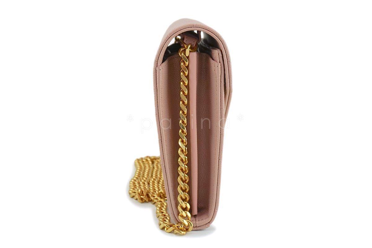 YSL Saint Laurent Nude Pink Powder Beige Grain de Poudre Wallet on Chain WOC Bag SHW